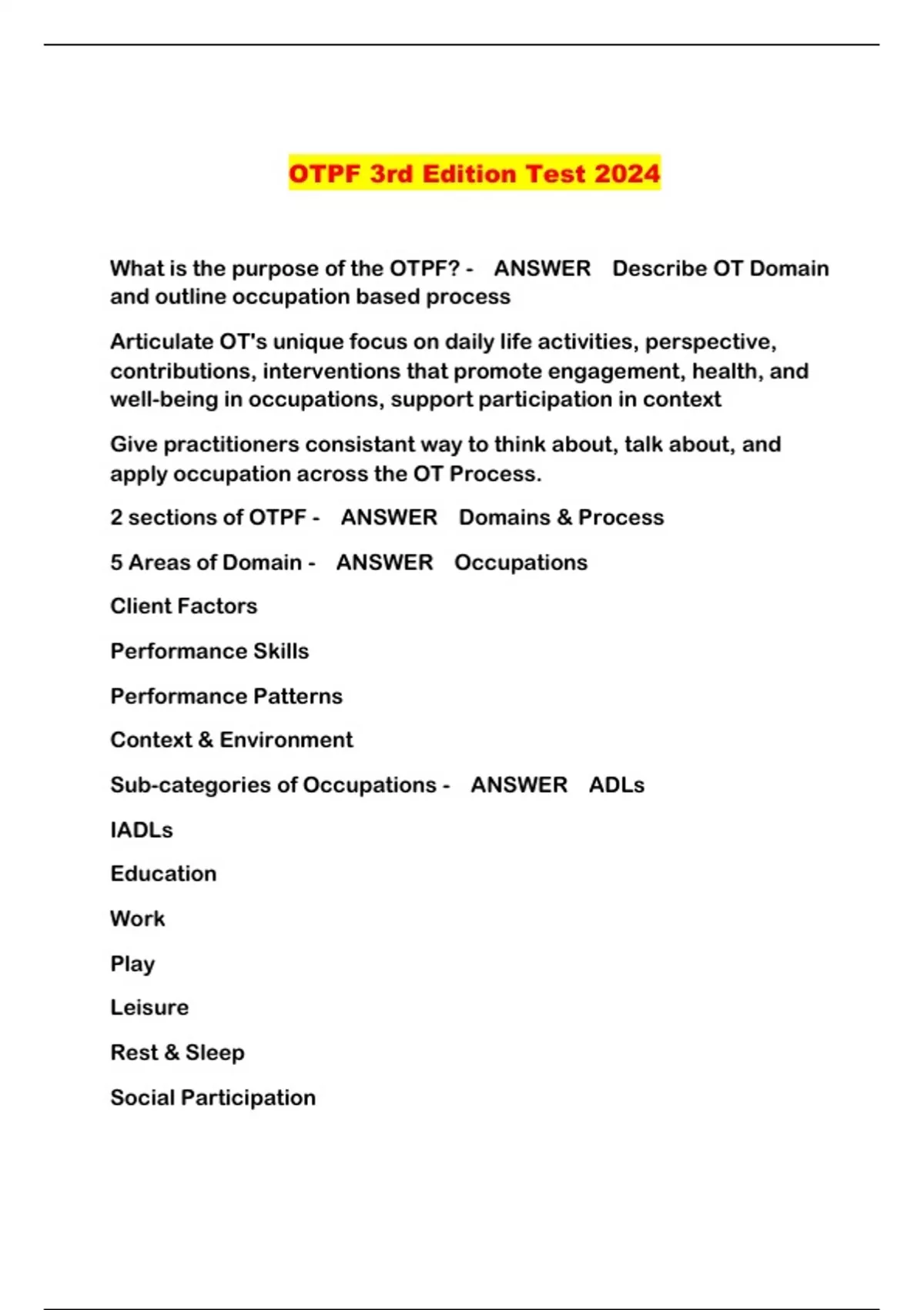 OTPF EXAM STUDYGUIDE 2024