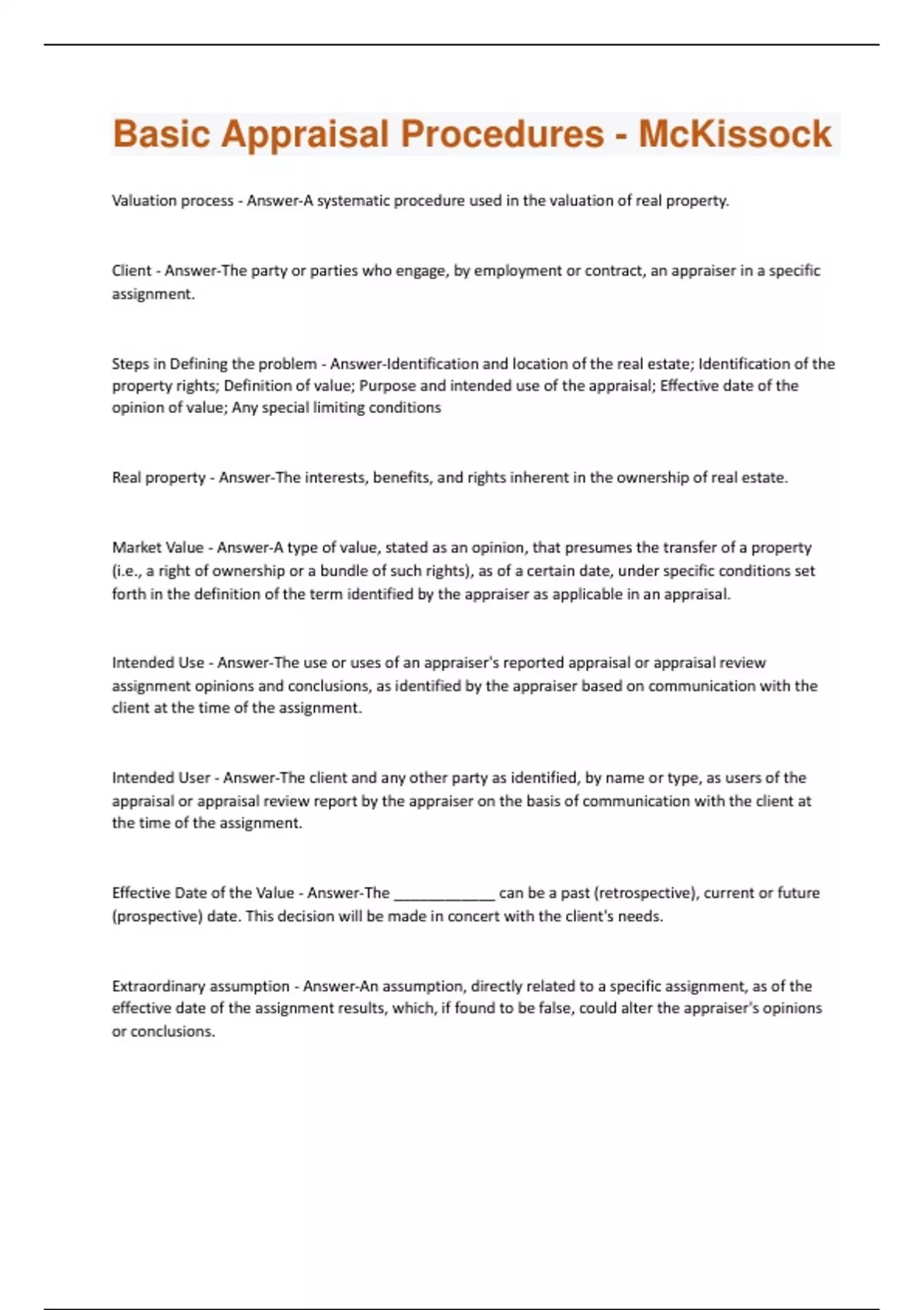 Basic Appraisal Procedures - McKissock Questions and Answers 2024 Correctly done