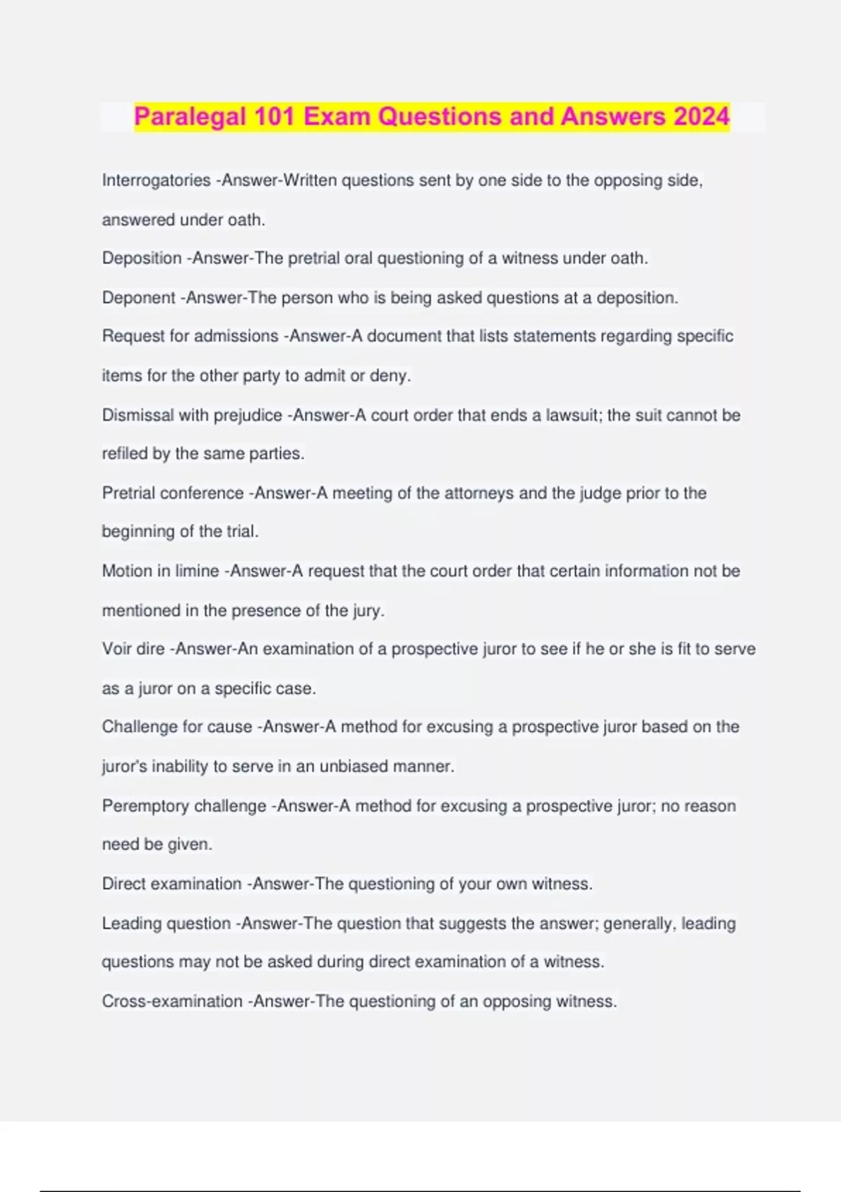Paralegal Career for Dummies Legal Terms Questions and Answers 2024