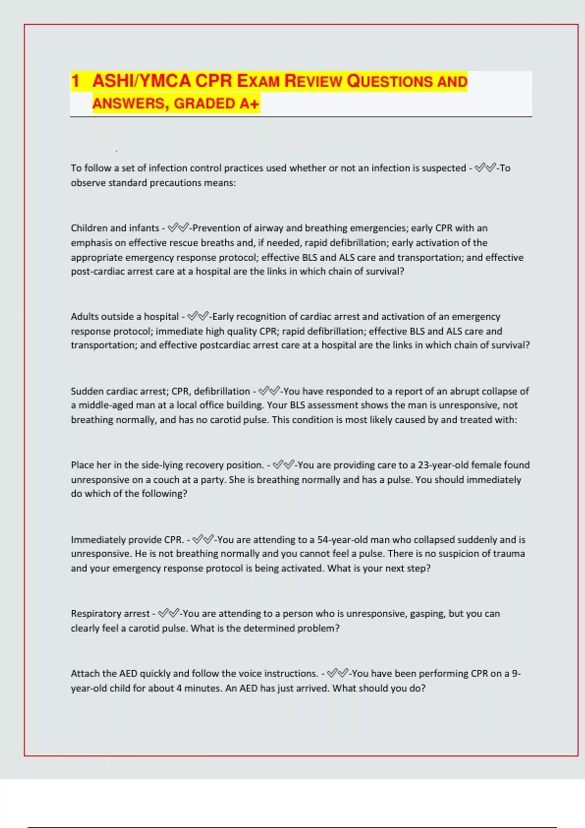 | LATEST EXAM UPDATES| 2024/25 |ASHI CPR TRAINING EXAM REVIEW QUESTIONS AND ANSWERS, GRADED A+/ VERIFIED.