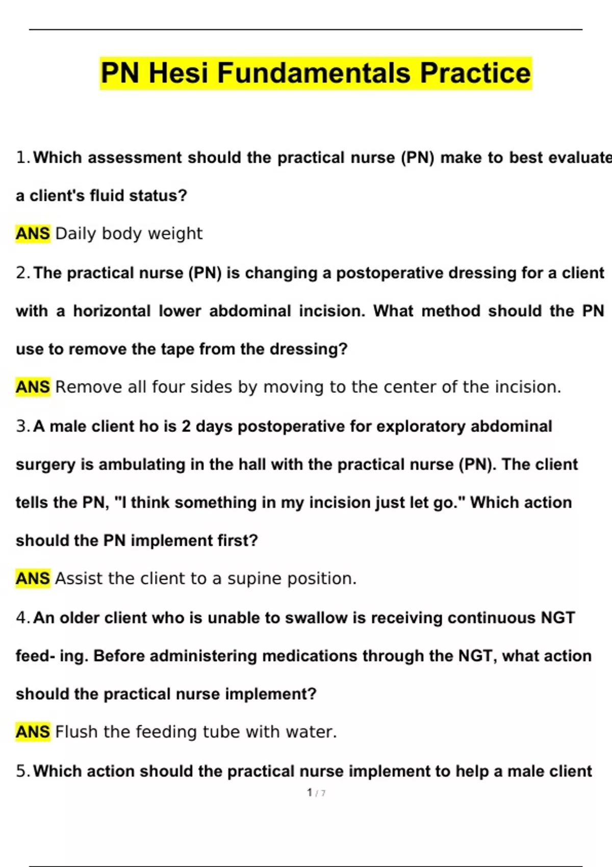 HESI RN FUNDAMENTALS EXAMS BUNDLED HESI Fundamentals Practice Test B Questions and Answers (2024 / 2025) (Verified Answers)