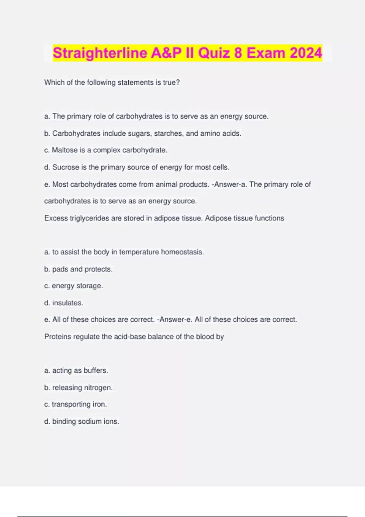 Straighterline A&P Quiz 3 Exam Questions and Answers