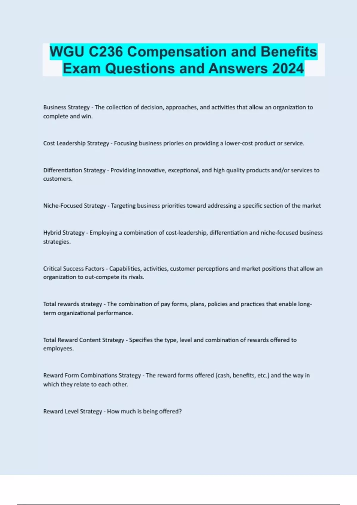 WGU C236 Compensation & Benefit Questions and Solutions combined