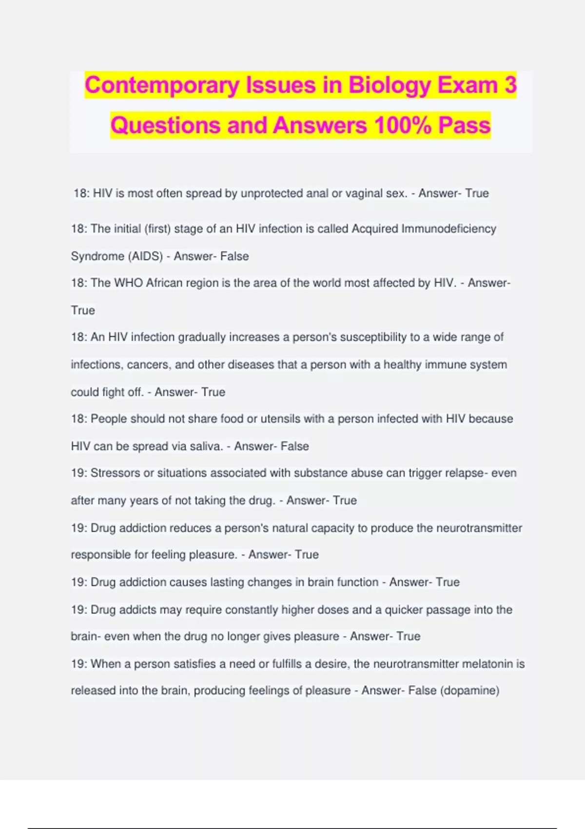 Contemporary Issues in Biology (TCU) Bundled Exams Questions and Answers 100% Verified and Updated
