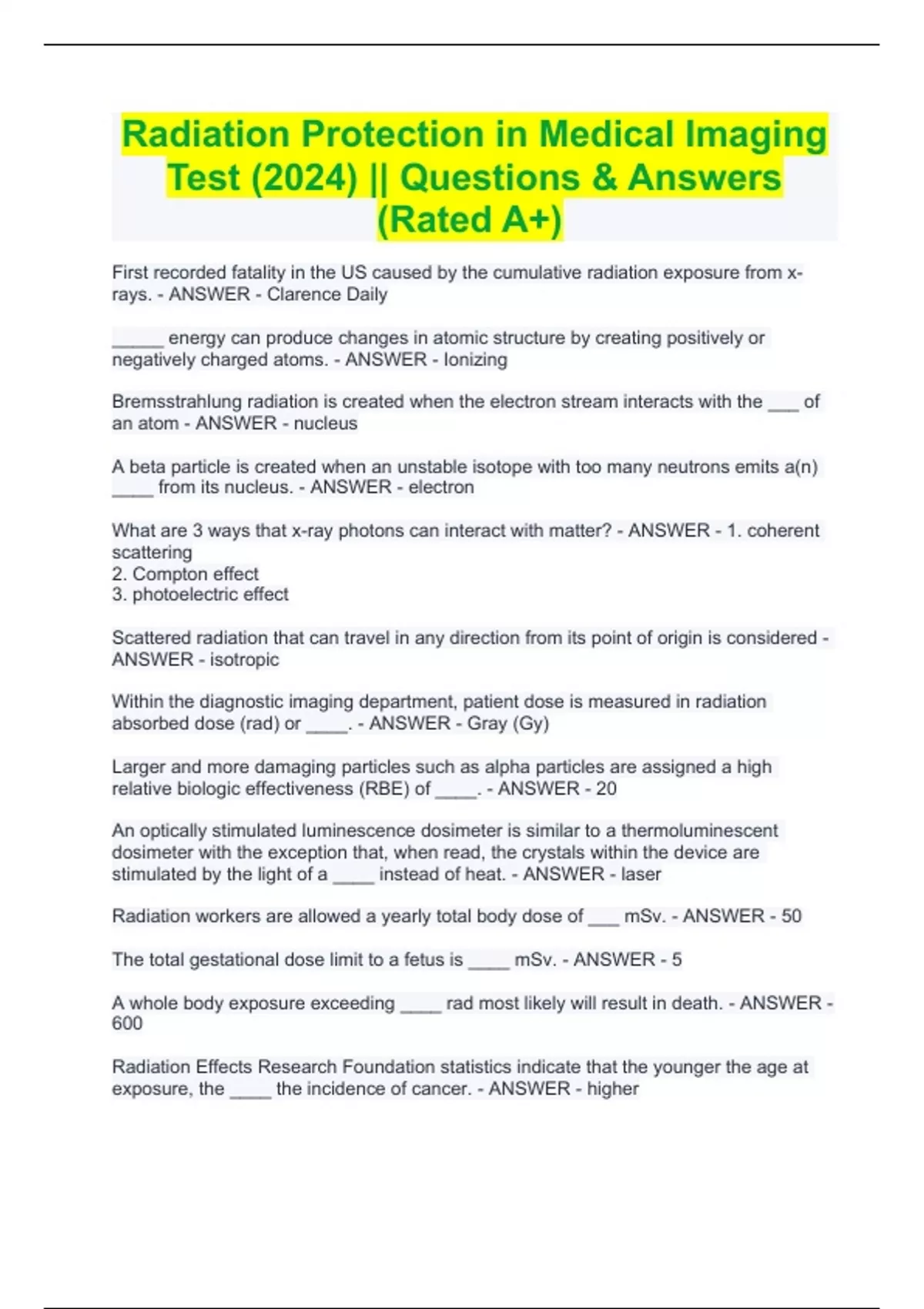 Radiation Protection of Patients and Personnel in Medical Radiography/Imaging Exam BUNDLE || Package Deal With Complete Questions & Answers (100% Expert Verified- Rated A+) Radiation Protection of Patients and Personnel in Medical Radiography/Imaging Exam BUNDLE || Package Deal With Complete Questions & Answers (100% Expert Verified- Rated A+)