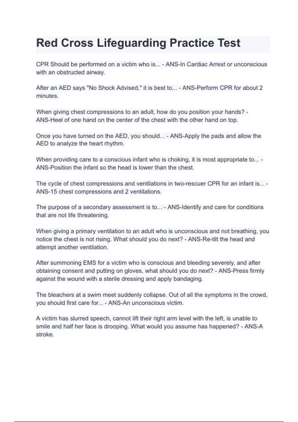 Lifeguard Written Test (Red Cross) with complete solution / Latest updated .