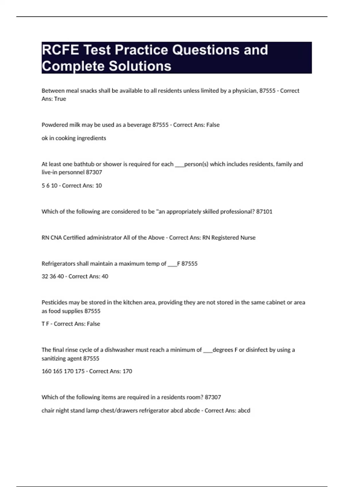 RCFE Component Exam Questions and Complete Solutions Bundle Compilation Graded A+