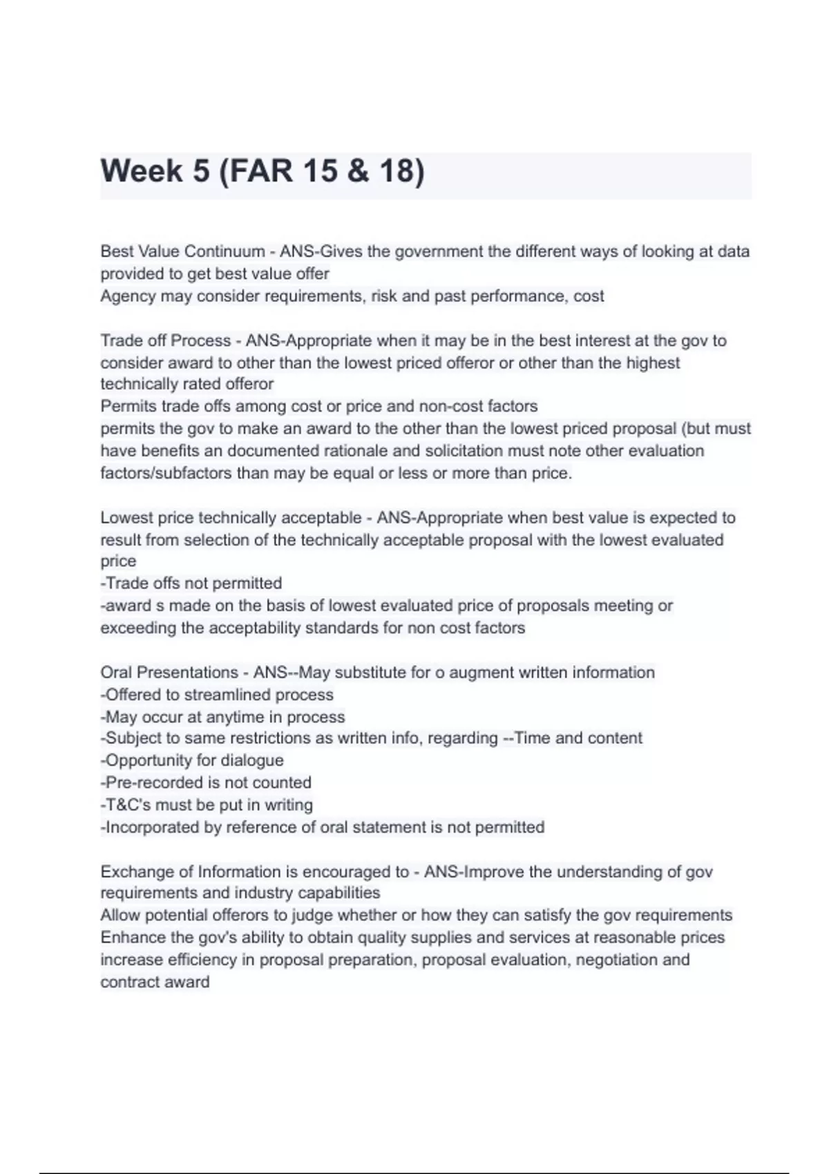 Week 5 (FAR 15 & 18) with complete solution / Latest updated .