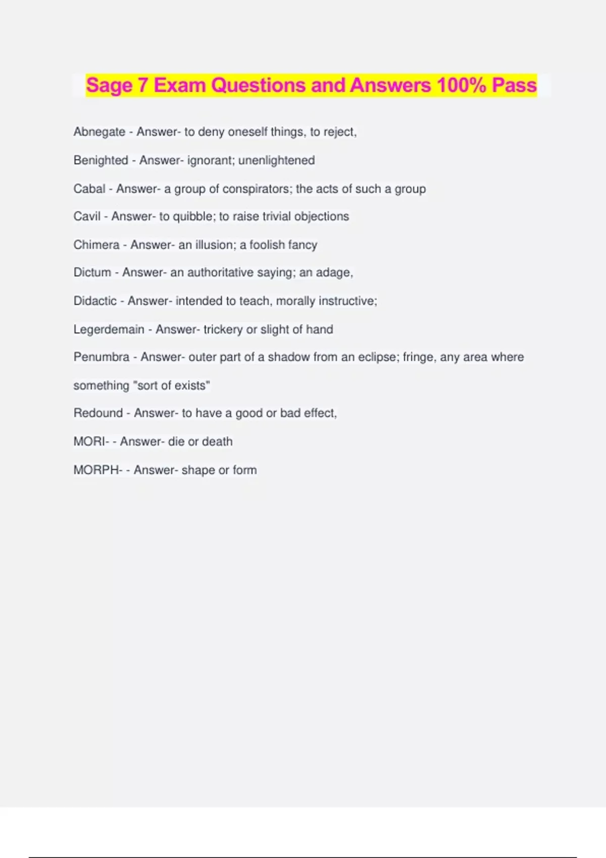 Vocab Sage (1) Exam Questions and Answers