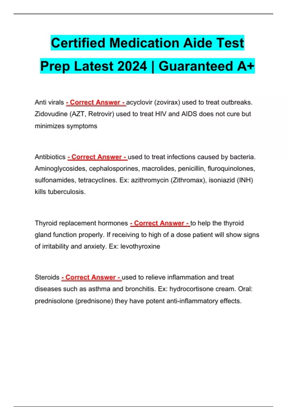Certified Medication Aide Test Prep Latest 2024 | Guaranteed A+