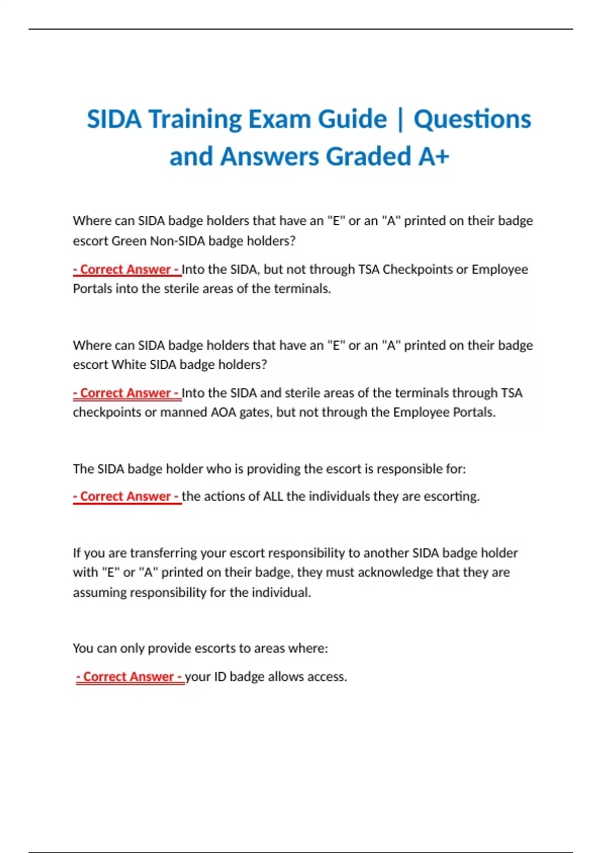 SIDA Badge 2024 Questions and Verified Answers Graded A+