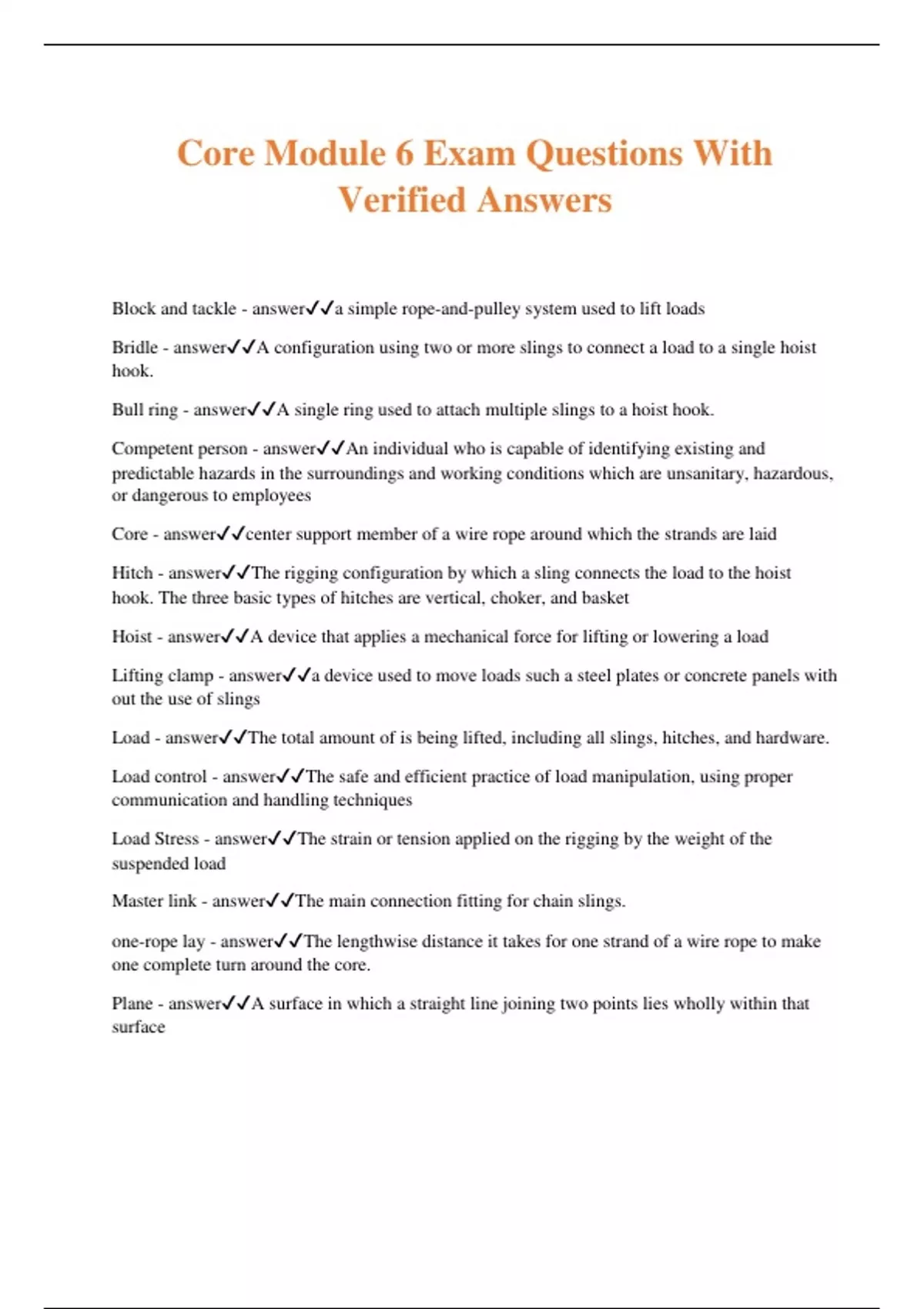 Basic Rigging Module 6 – Exam Questions And Answers ( Verified And Updated )