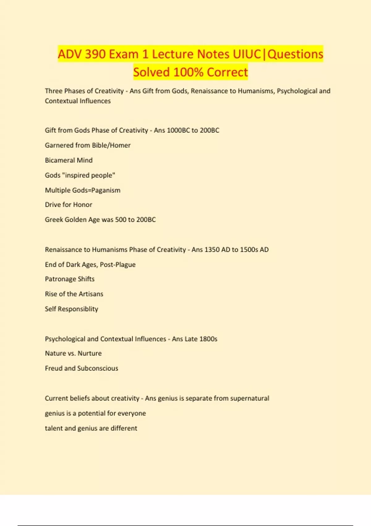 ADV 390 Exam 1 Lecture Notes UIUC|Questions Solved 100% Correct