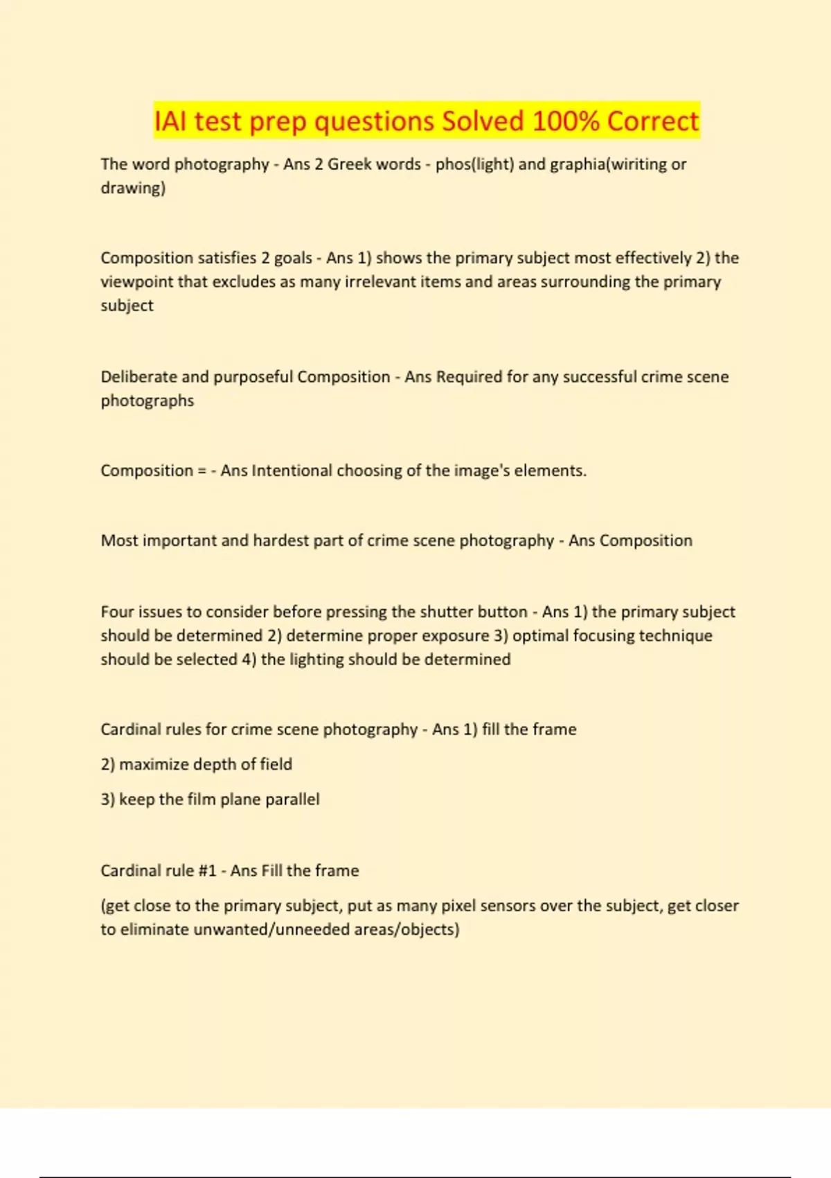 Crime Scene Analyst IAI Review Questions Solved 100% Correct
