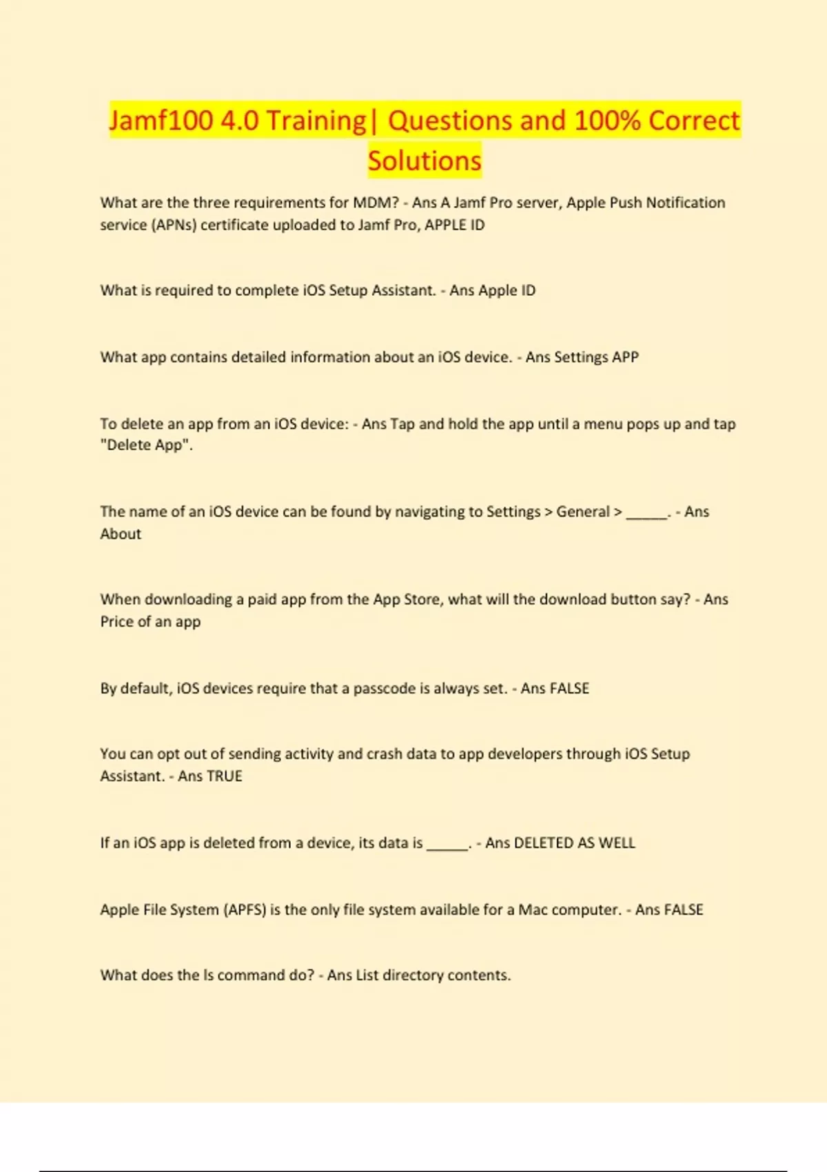JAMF 100 EXAMS BUNDLE| Questions and 100% Correct Solutions