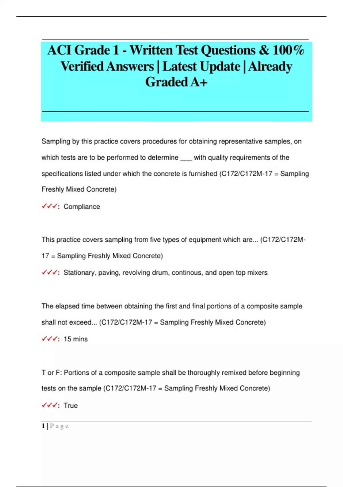 ACI Concrete Field Testing Technician- Grade I Questions & 100% Verified Answers Pack| Latest Update | Already Graded A+
