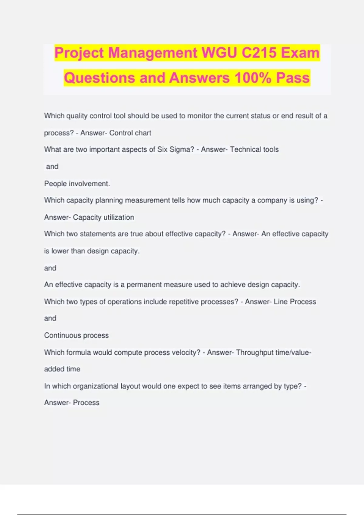 WGU C215 Operations Management PVDC Exam Questions and Answers 100% Pass
