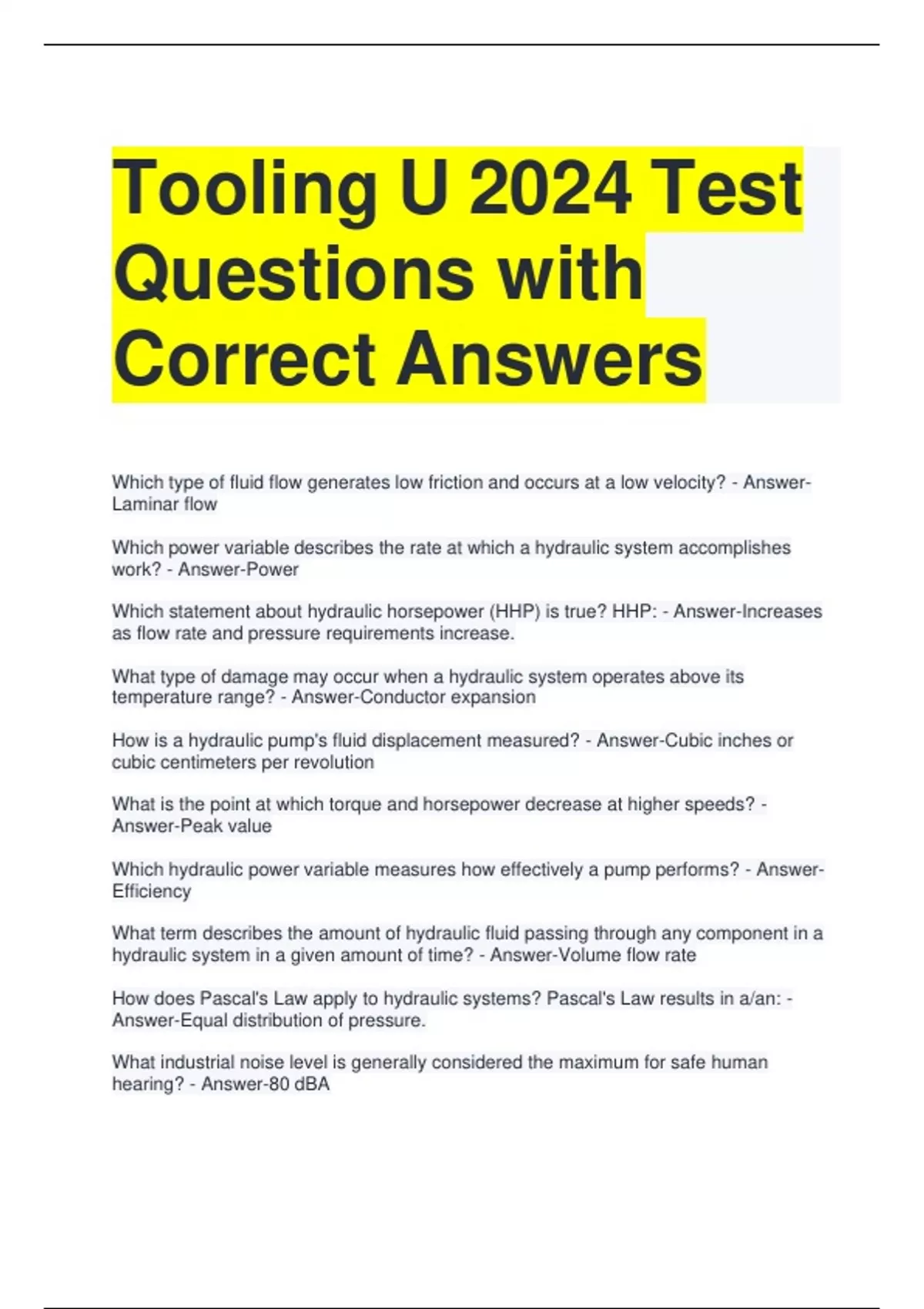 Exam (elaborations) Tooling U Work holding Questions with Answers All Correct (1) 2 Exam (elaborations) Tooling U Welding 2024 Exam with Complete Solutions (1) 3 Exam (elaborations) Tooling U Troubleshooting 181 Test Questions with Correct Answers (1) 4 Exam (elaborations) Tooling U Test Questions with All Correct Answers (1) 5 Exam (elaboratio