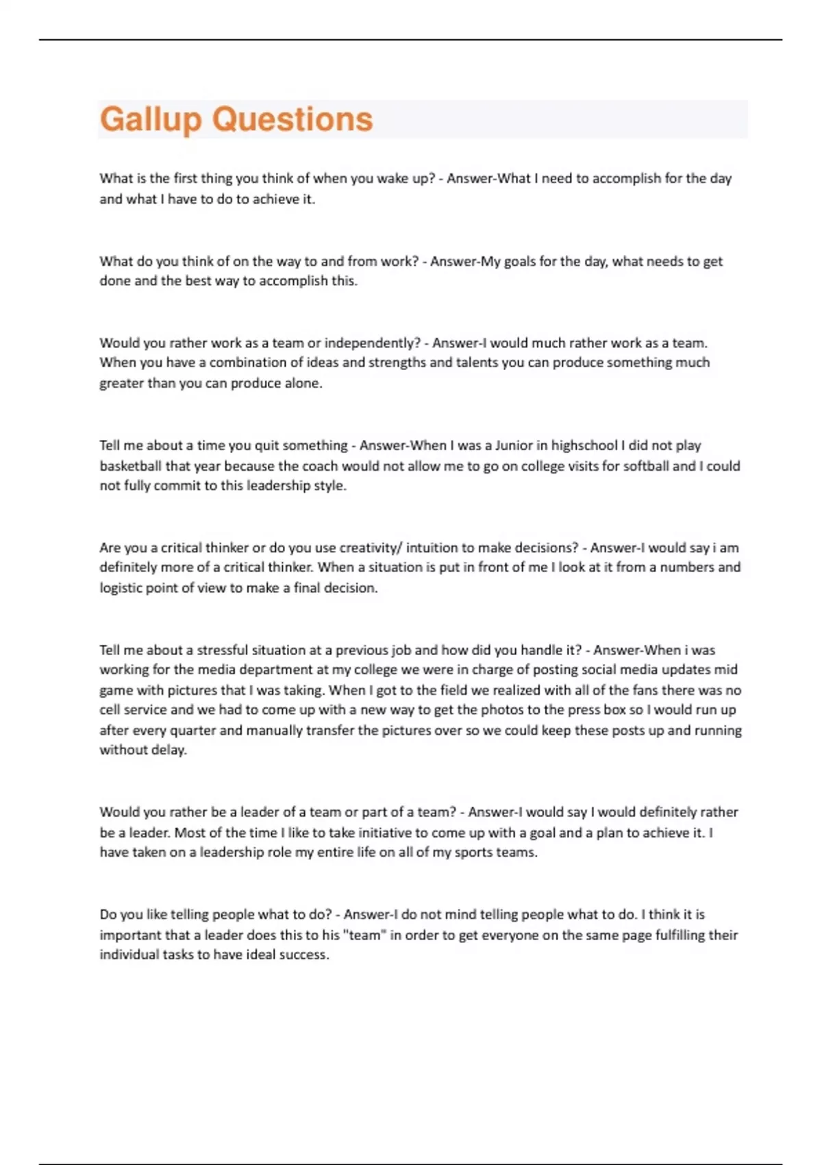 Gallup questions and answers all are graded A+