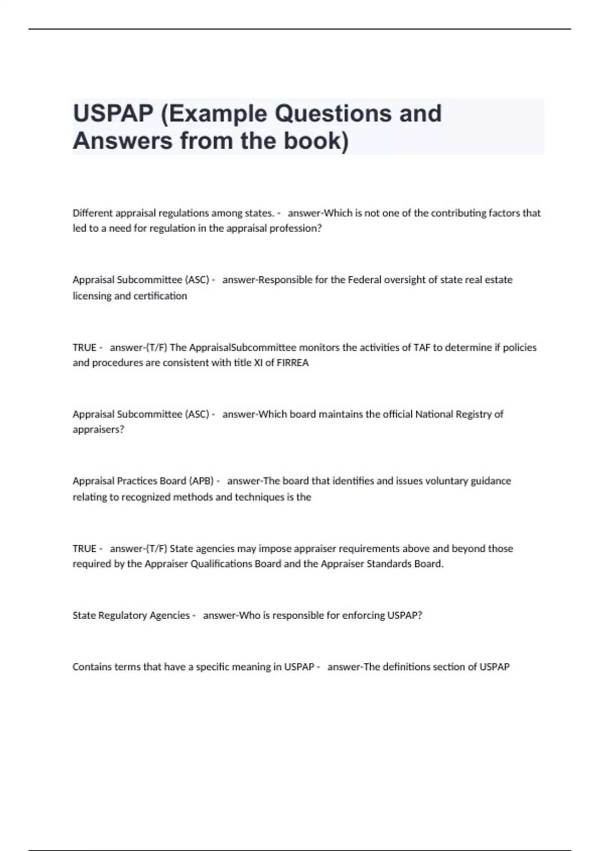 USPAP EXAM BUNDLE WITH COMPLETE SOLUTIONS GRADED A