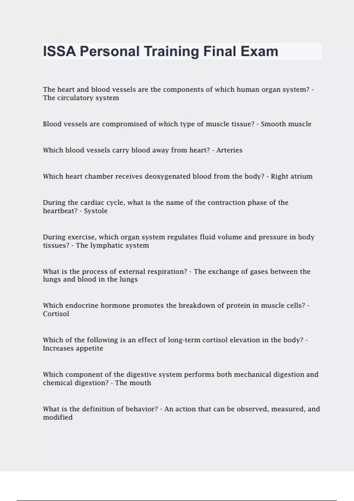 Bundle for ISSA PERSONAL TRAINING Exam guide 2024 with 100%verified solutions