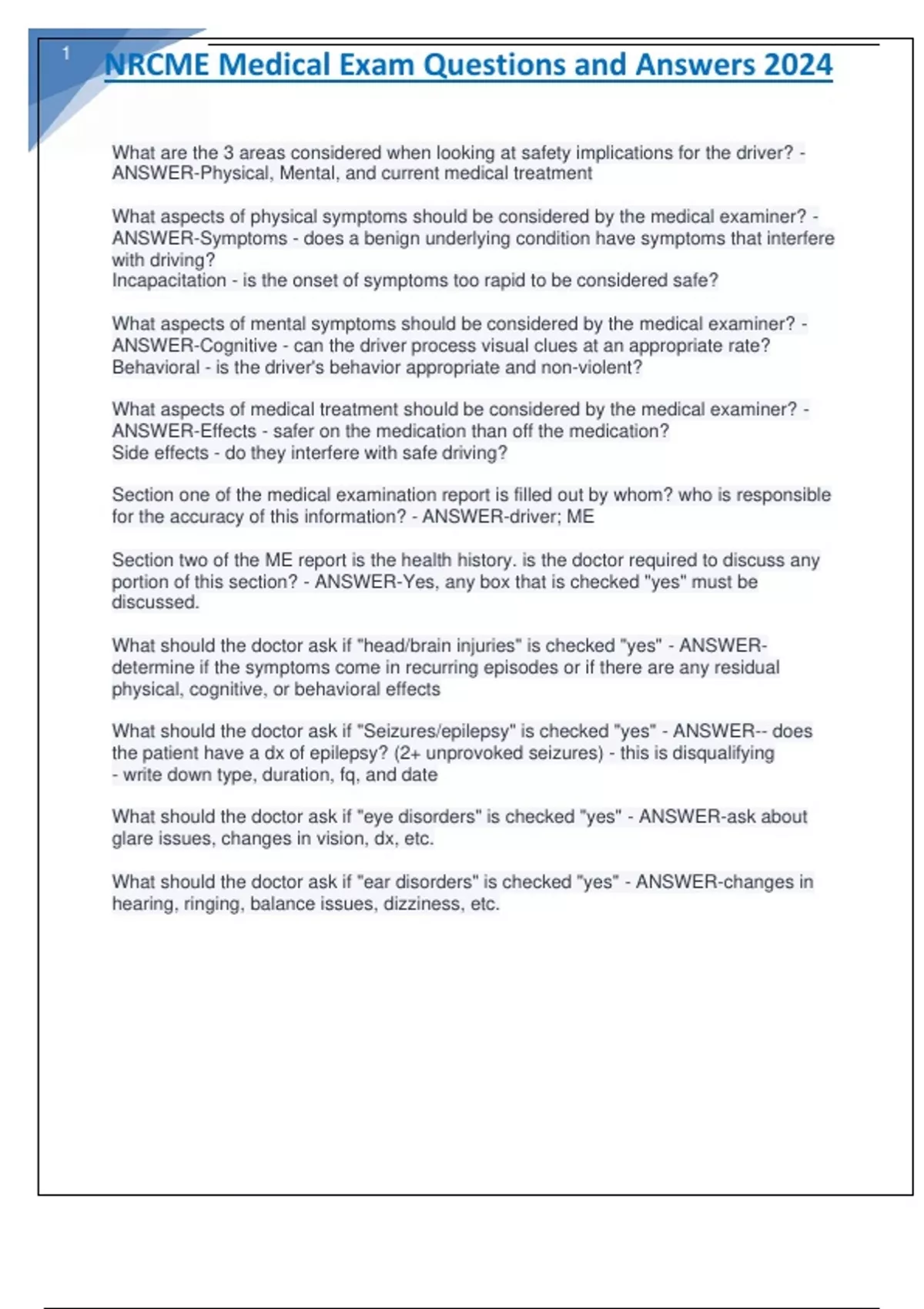 NRCME Test Questions and Answers 2024.