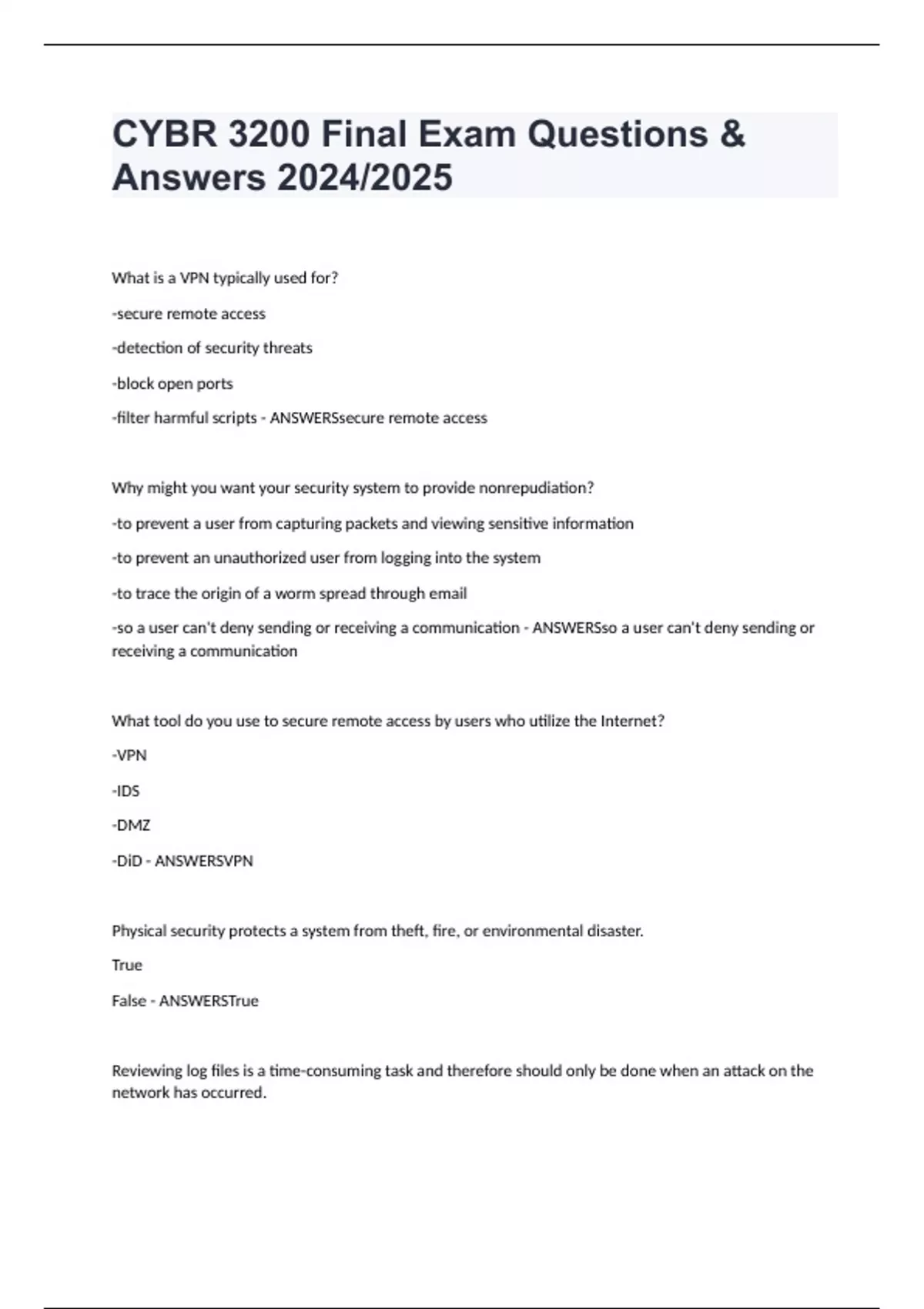 CYBR 3200 Review Exam Questions & Answers 2024/2025