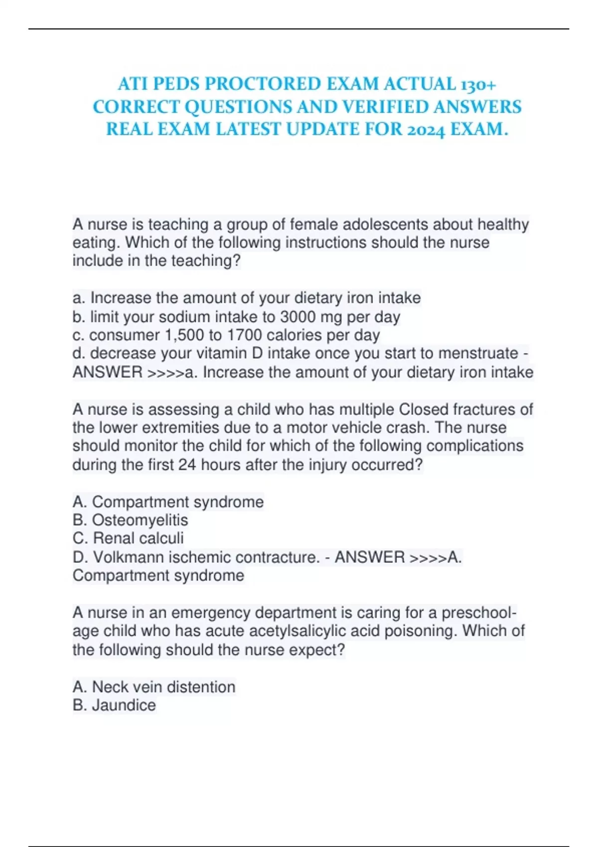ATI PEDS PROCTORED 2024 EXAM LATEST UPDATED PEDS EXAMS PACKAGE DEAL.