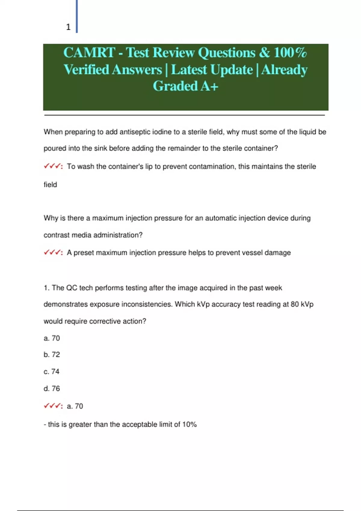 CAMRT - Test Review Questions & 100% Verified Answers | Latest Update | Already Graded A+