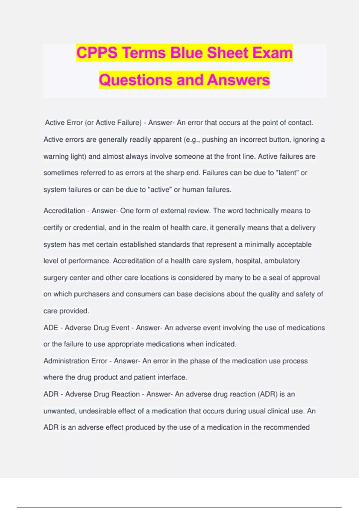 Certified Professional in Patient Safety, CPPS Patient Safety Certification, National Patient Safety Goals, Patient Safety and Risk Management Exam Questions and Answers