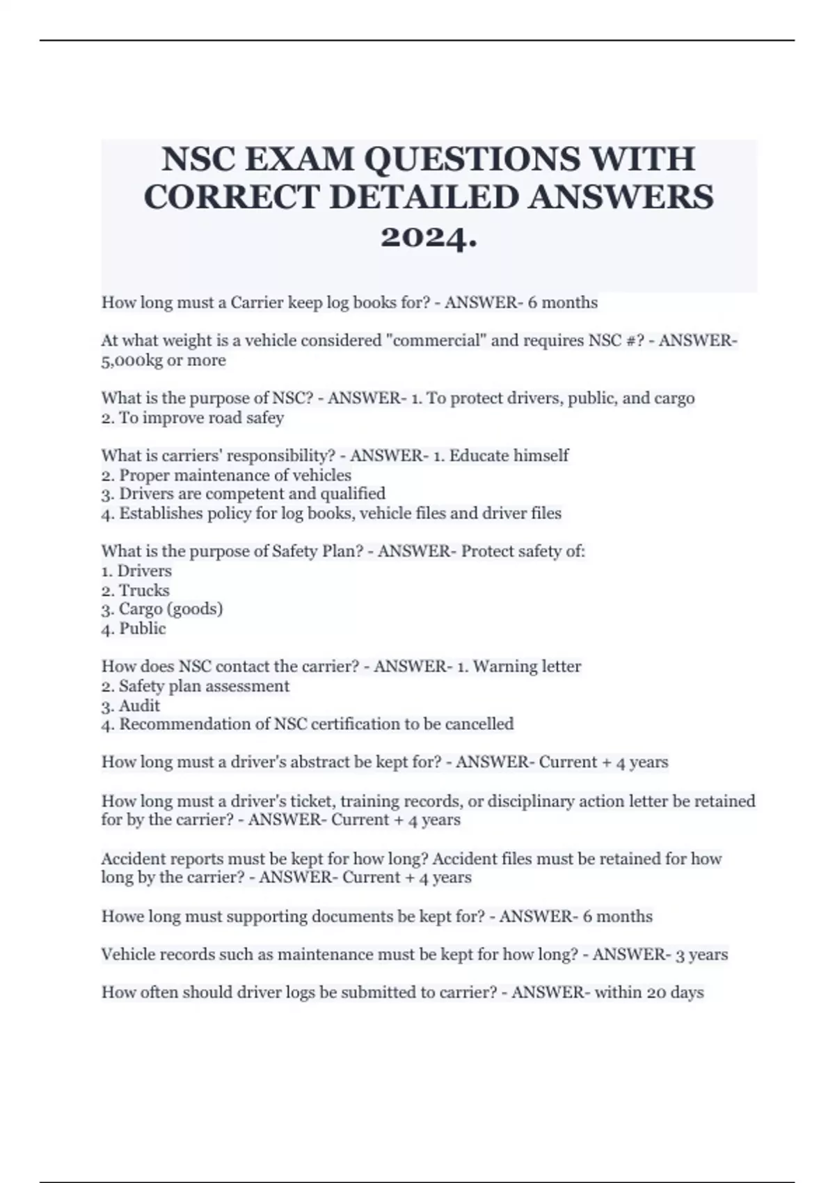 NSC FINAL EXAM QUESTIONS WITH CORRECT DETAILS