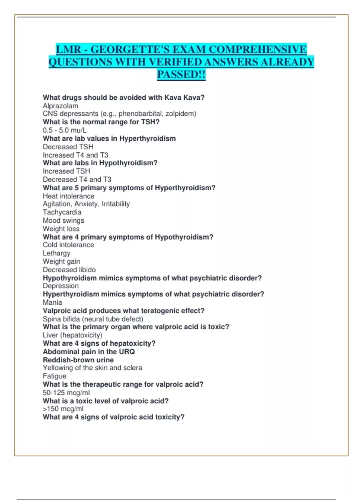 Package Deal For Georgette s LMR/Domain Georgette s /Georgette Review Exam Bundled Graded A