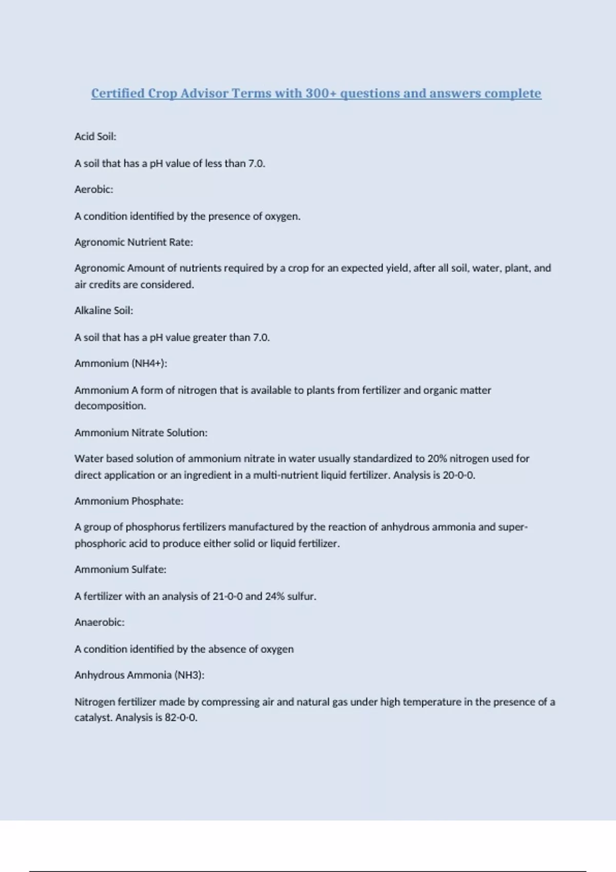 Certified Crop Advisor Terms with 300+ questions and answers complete