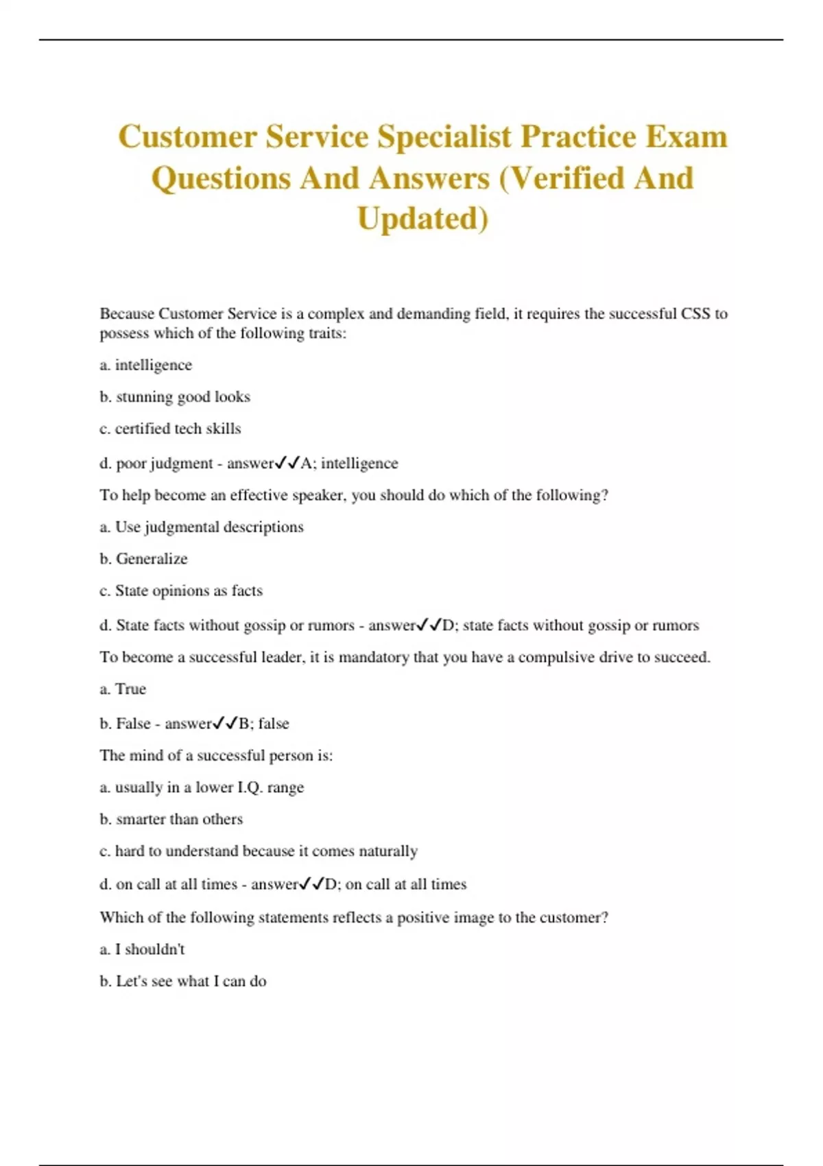 Customer Service Specialist Practice Exam Questions And Answers (Verified And Updated)