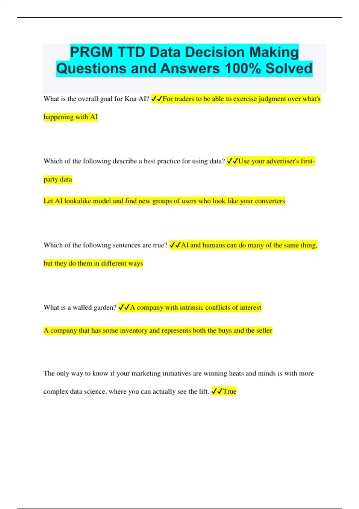 TheTradeDesk Bundled Exams Questions and Answers Latest Versions (2024/2025) (Complete and Accurate)