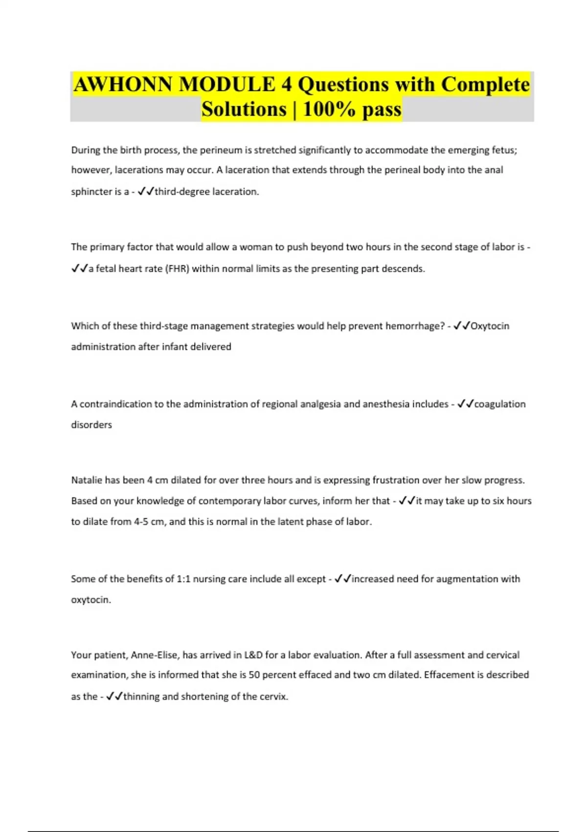 AWHONN MODULE 4 Questions with Complete Solutions | 100% pass