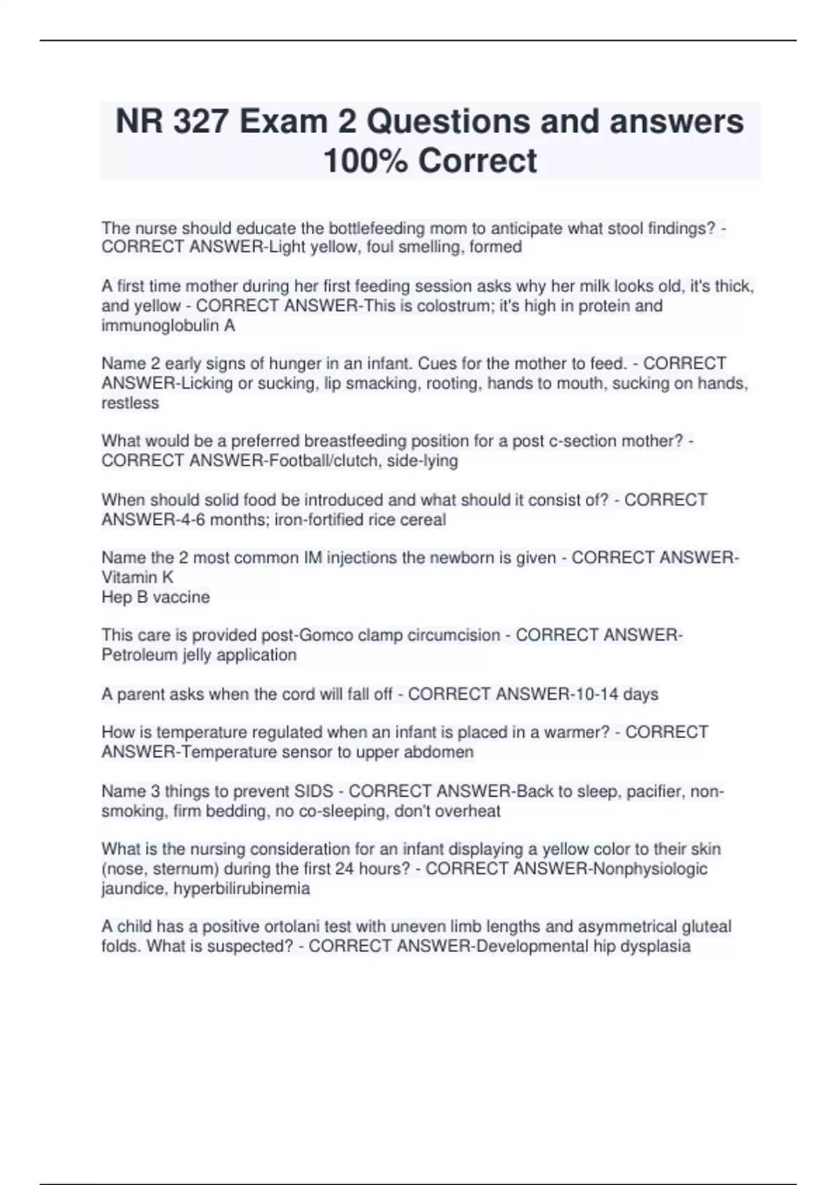 NR 327 Exam 2 Review Study Guide Exam Q&A Latest and Verified NR327 Exam 2 Real Practice test Complete questions and answers NR327 Exam 2 set (questions and answers) NR 327 exam 2 study guide Verified Questions and Answers Exam 2- NR 327 students manual Exam (best questions and answers) A-Graded Exam 2 NR 327 Complete Course Final Questions and Cor