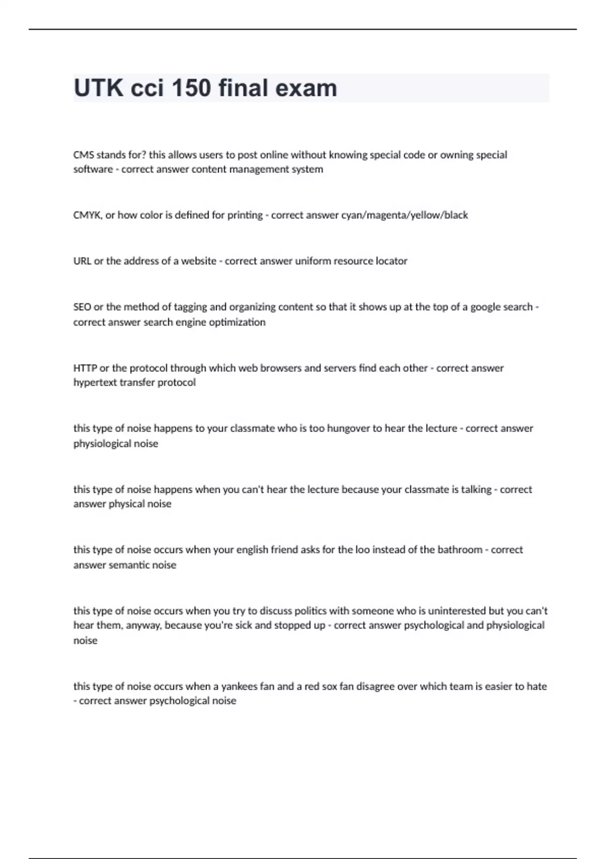 PACKAGE DEAL OF UTK CCI 150 QUESTIONS WITH COMPLETE SOLUTION CCI 150 - Exam 2 - Gary UTK Question and answers verified to pass Exam (elaborations) CCI 150 - Exam 2 Question and answers already passed Exam (elaborations) CCI 150 Exam 1 Question and answers100% correct Exam (elaborations) CCI 150 Exam 1 Question and answers already passed Exa