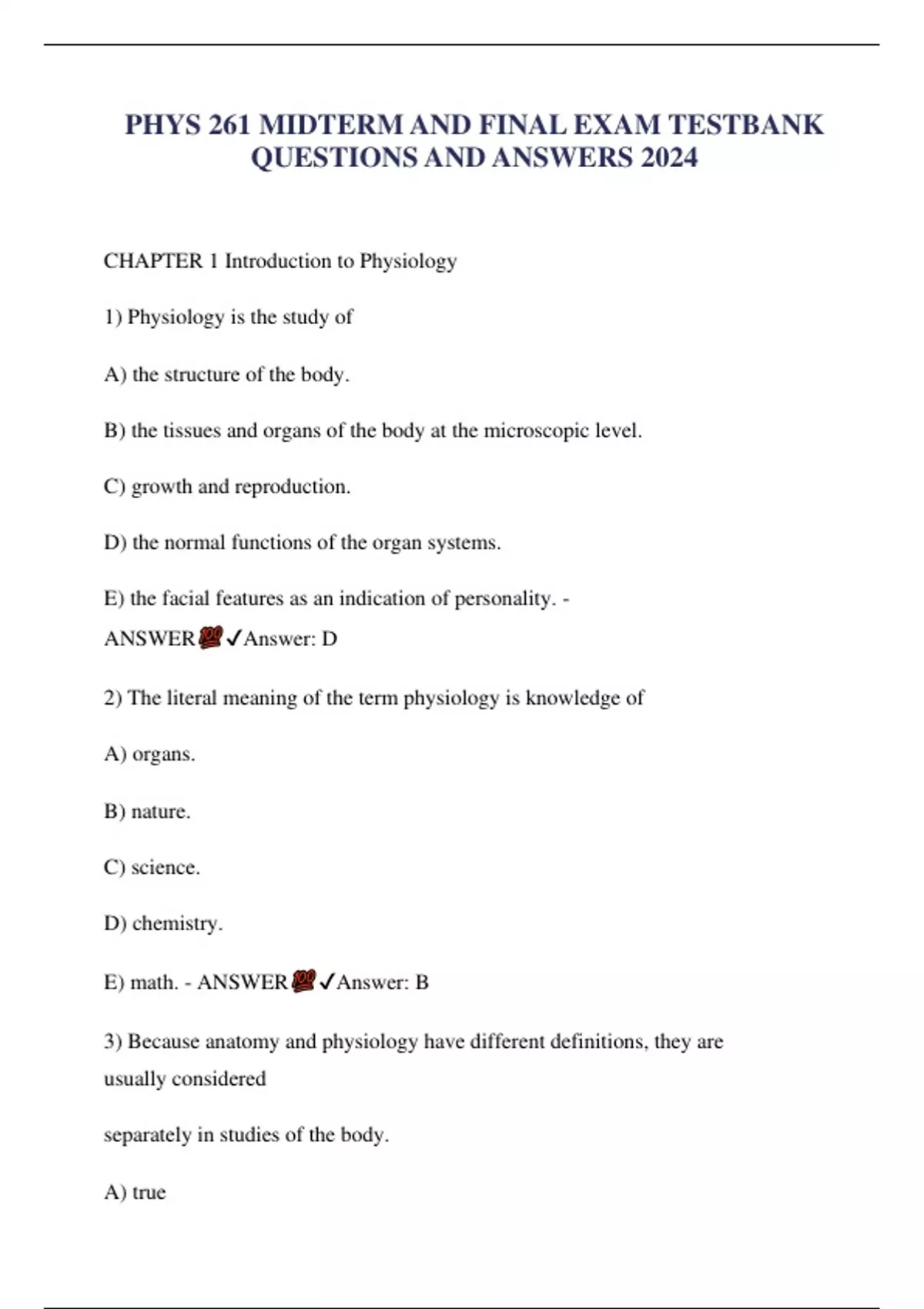 PHYS 261 MIDTERM AND FINAL EXAM TESTBANK QUESTIONS AND ANSWERS LATEST 2024.
