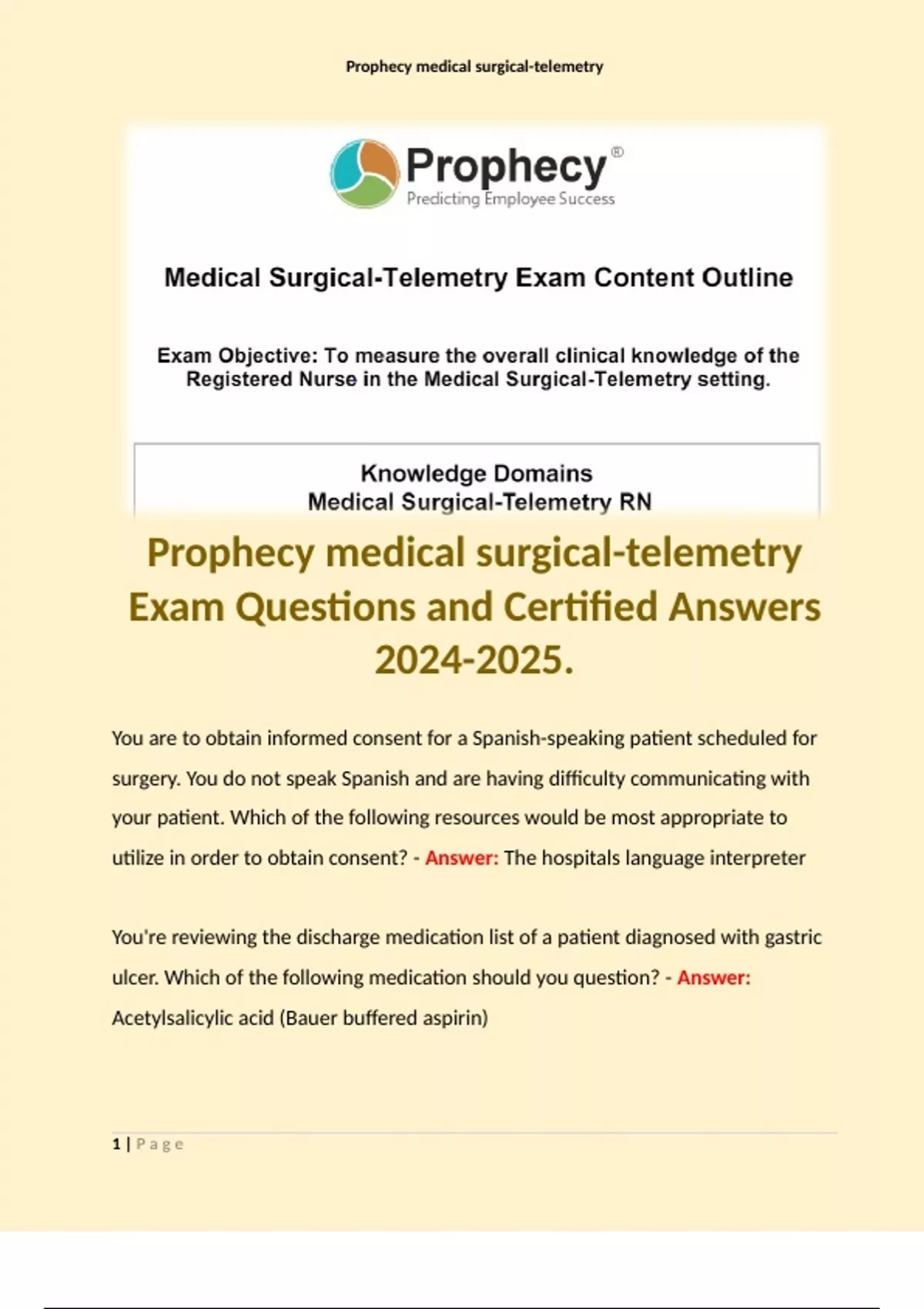 1 Exam (elaborations) Relias Prophecy Assessments - Core Mandatory Part 1, 2 & 3/ All in One Complete Exam Containing 105 Questions (35 Quizzes Each) with Certified Solutions 2 Exam (elaborations) Prophecy Assessments - Core Mandatory Part 1 Exam Questions with Certified Solutions . Terms like: Hazards associated with compressed