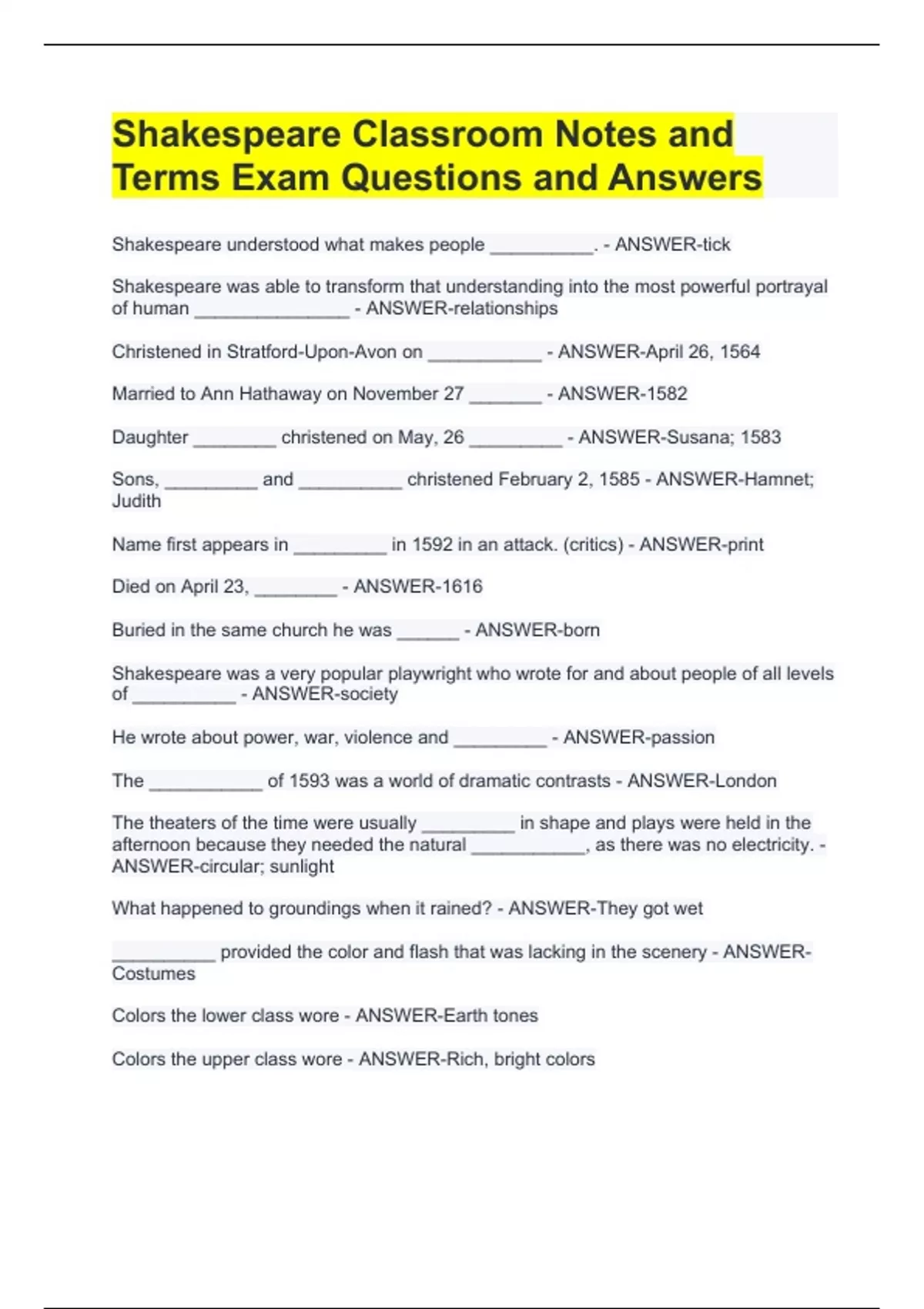 Exam (elaborations) The Taming of the Shrew Specific Criticism Exam Questions with Latest Update Exam (elaborations) the role of women in Shakespearean society Exam (elaborations) taming of the shrew Exam Questions with Latest Update (Shakespeare’s Women) Exam (elaborations) Shakespeare's World Exam Questions with Verified Answers Exam (el