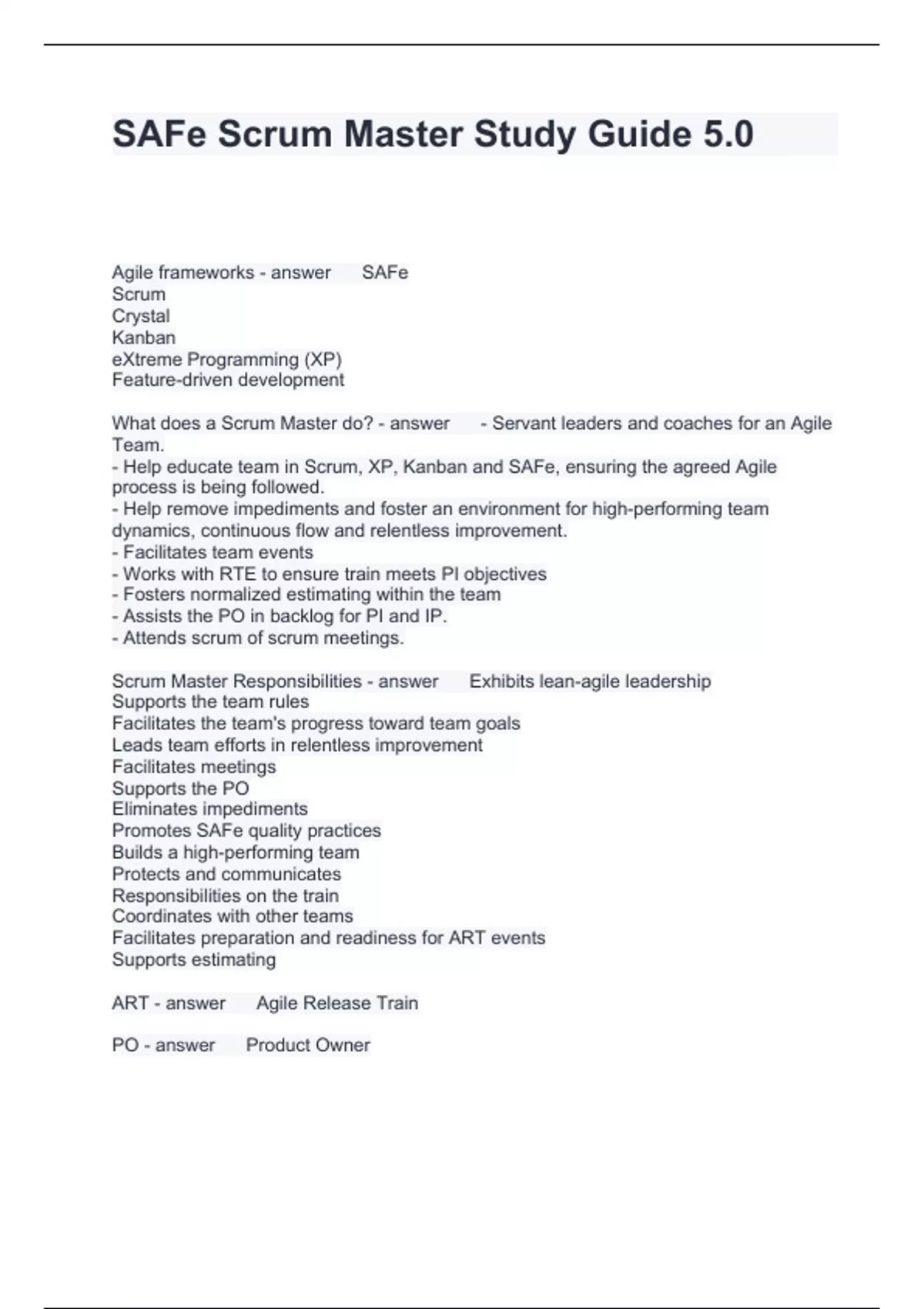 Exam (elaborations) Implementing SAFe study Questions and Answers 2024 Exam (elaborations) Introducing the Scaled Agile Framework Questions with correct Answers 2024 Exam (elaborations) Leading SAFe (5.1) Questions and Answers 100% correct Exam (elaborations) Leading SAFe (SA) Questions and Answers 2024 Exam (elaborations) Leading SAFe Cer
