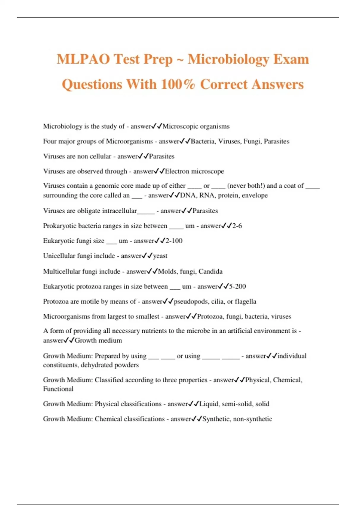 MLPAO Test Prep ~ Microbiology Exam Questions With 100% Correct Answers