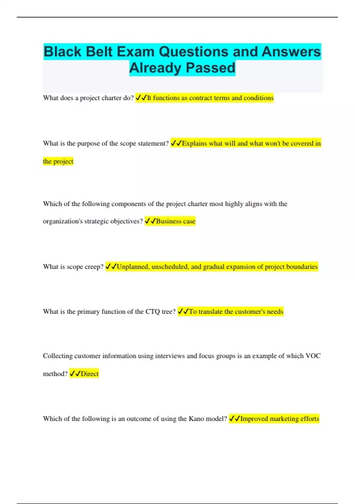 Six Sigma Black Belt Bundled Exams Questions and Answers Latest Versions (2024/2025) 100% Pass