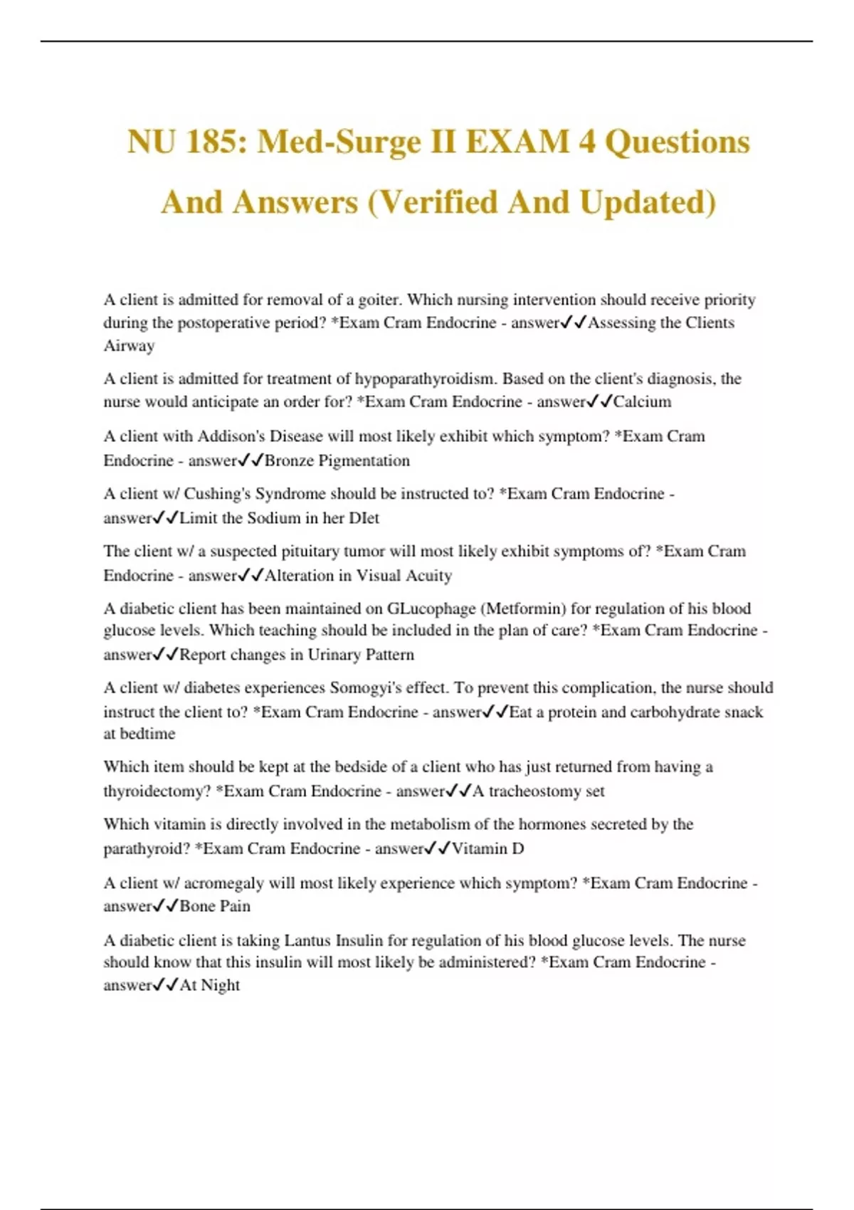NU 185: Med-Surge II EXAM 4 Questions And Answers (Verified And Updated)