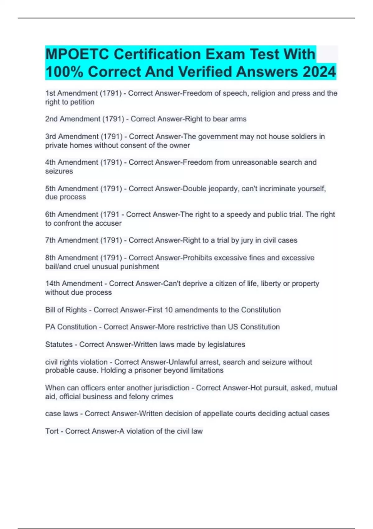 MPOETC Certification Exam Test With 100% Correct And Verified Answers 2024 MPOETC Exam Test 1 Mod 1 With 100% Correct And Verified Answers 2024 Mpoetc Act 120 Certification Exam Review With 100% Correct And Verified Answers MPOETC Exam #9 With 100% Correct And Verified Answers 2024 MPOETC Exam #7 With 100% Correct And Verified Answers 2024