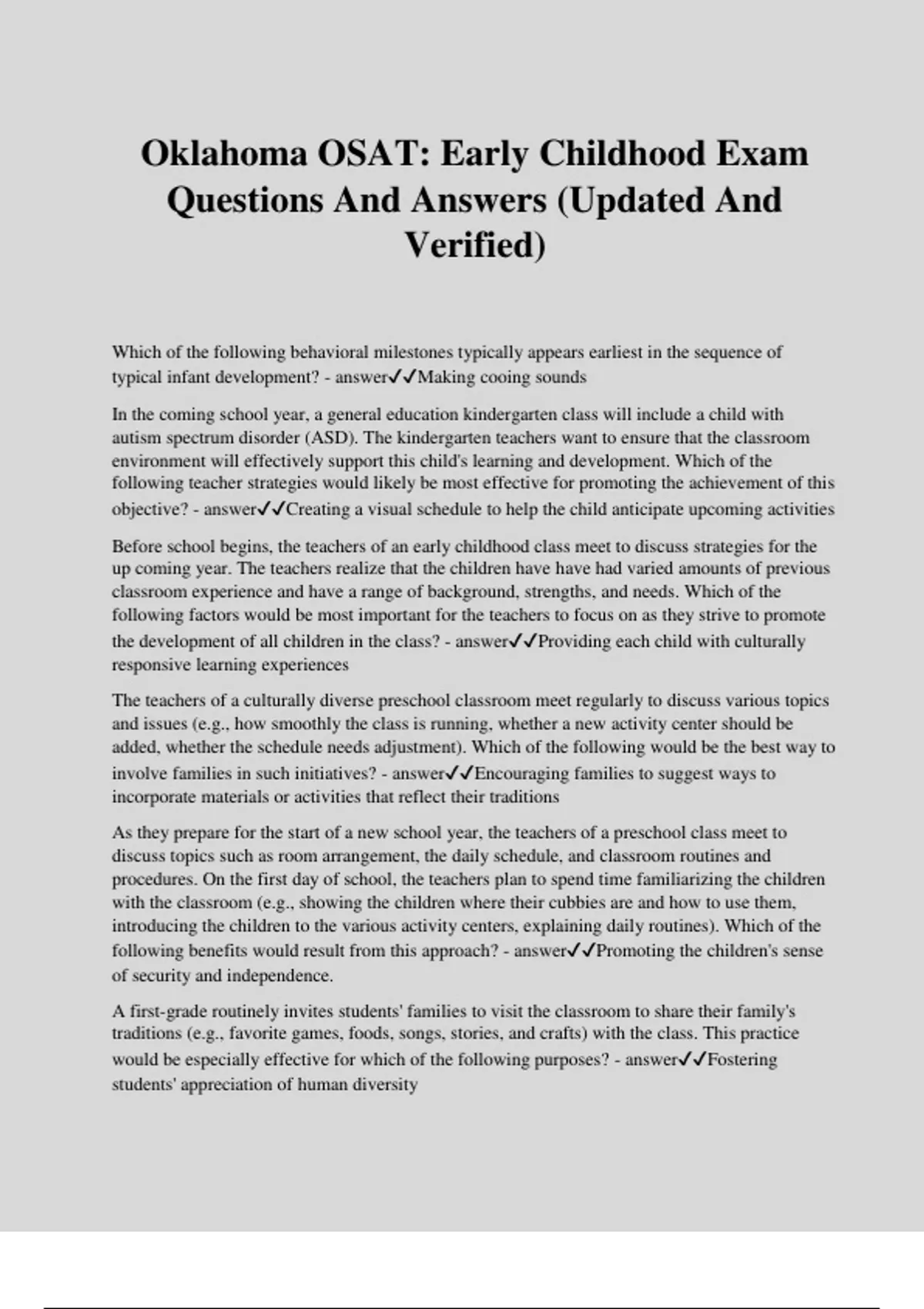 Oklahoma OSAT: Early Childhood Exam Questions And Answers (Updated And Verified)