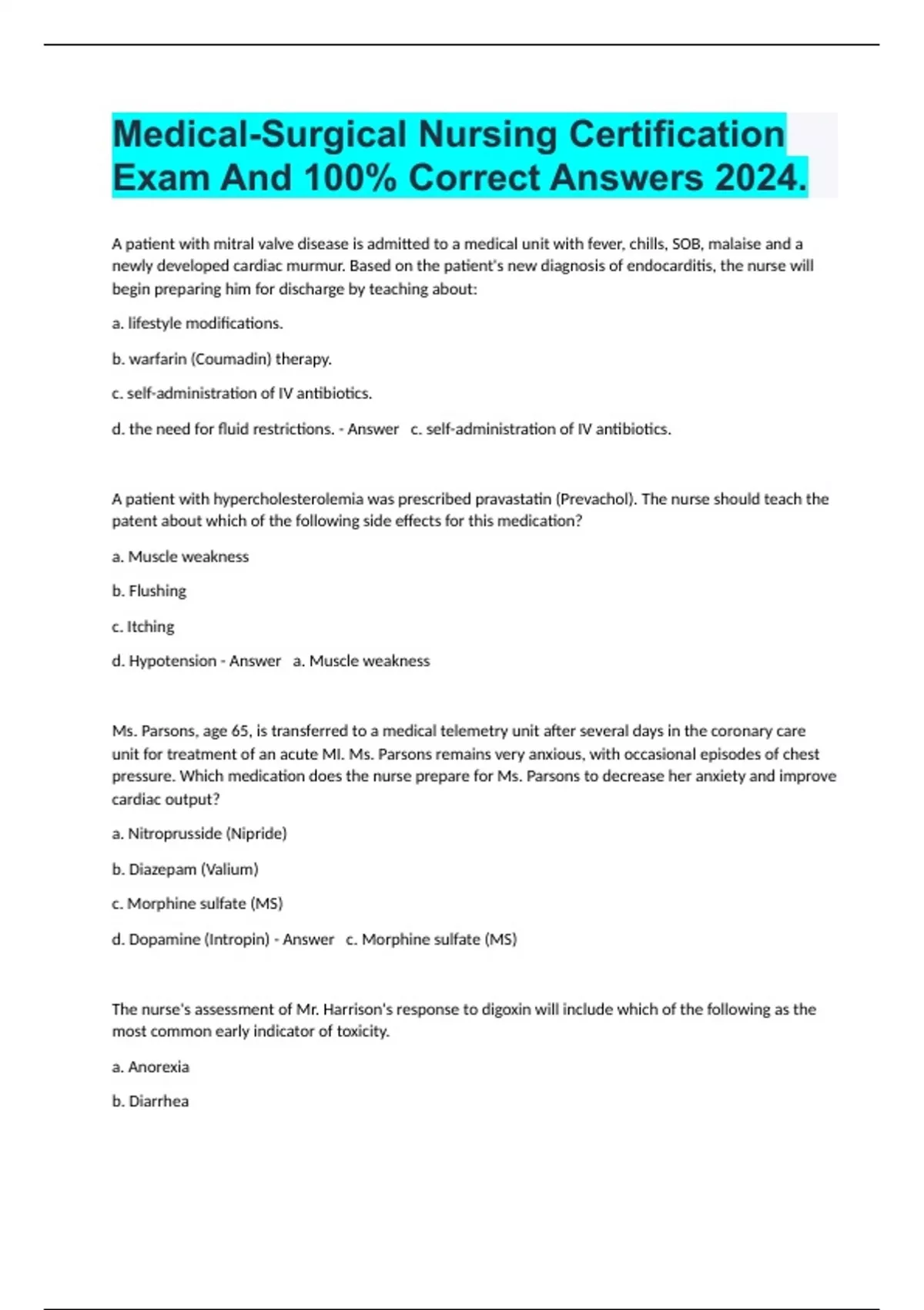 1 Exam (elaborations) CMSRN 3 Practice Exam With Solved Solutions 2024. 2 Exam (elaborations) CMSRN 4 Midterm Exam Well Answered Rated A+ 2024. 3 Exam (elaborations) CMSRN 346 Study Guide Exam Fully Solved 2024. 4 Exam (elaborations) CMSRN Final Exam And Answers Rated A+ 2024.