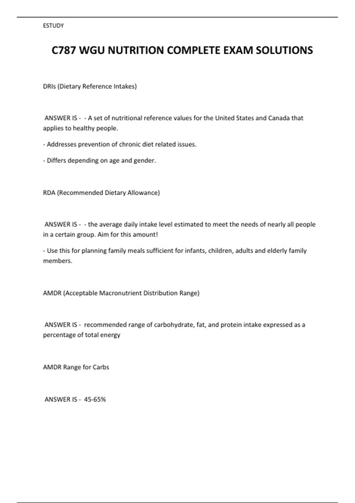 C787 WGU NUTRITION 2024 PACKAGEDEAL