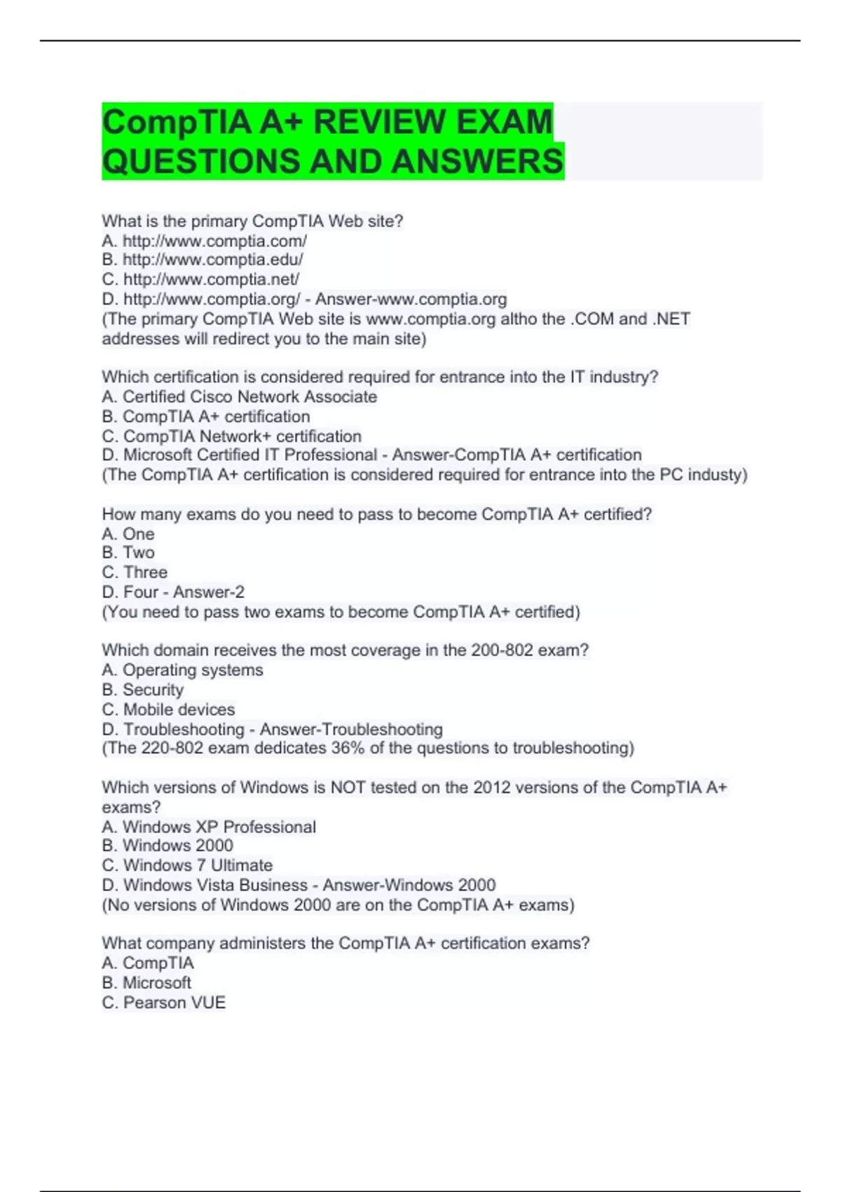 Exam (elaborations) CompTIA A+ EXAM 220-1001 AND 220-1002 QUESTIONS AND ANSWERS 100% Pass Exam (elaborations) CompTIA A+ CORE 1 (220-1101) CERTIFICATION STUDY GUIDE EXAM REVIEW QUESTIONS WITH CORRECT ANSWERS 2024 Exam (elaborations) CompTIA A+ CERTIFICATION STUDY GUIDE EXAM QUESTIONS WITH COMPLETE SOLUTIONS Exam (elaborations) CompTIA A+ CER